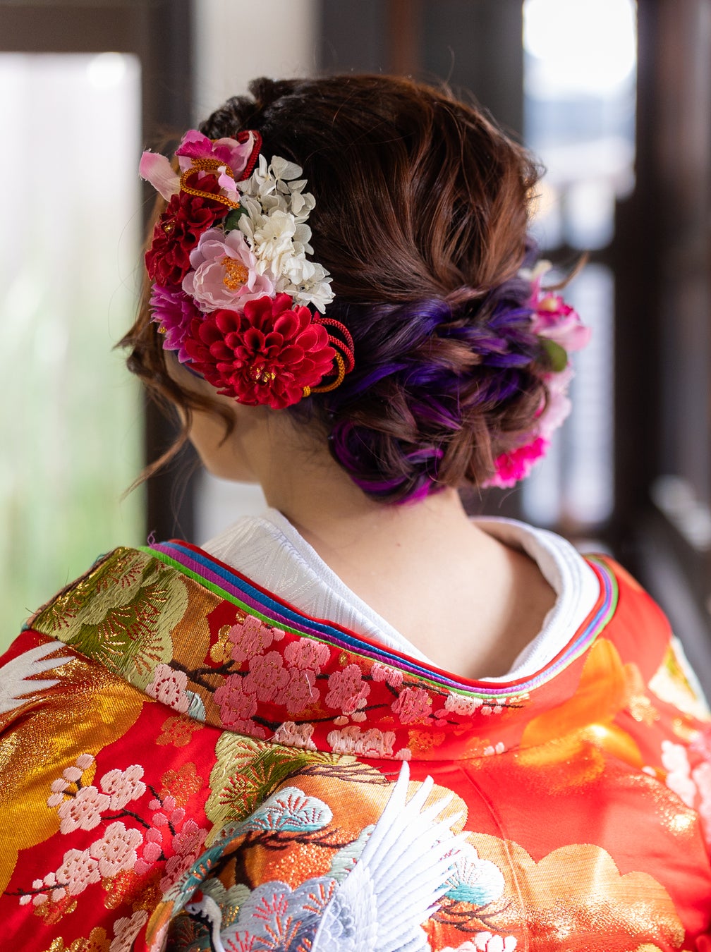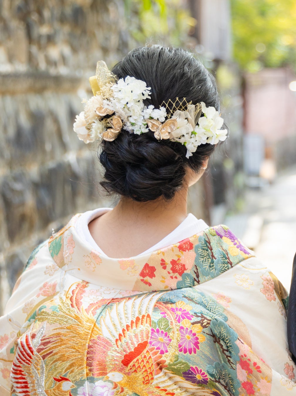 髪飾りのレンタルもプランに含まれていますのでご自身で用意していただく必要はございません。ご自身でお持ちの場合は当日お持ち込みいただきましたらヘアスタッフよりお付けいたします。