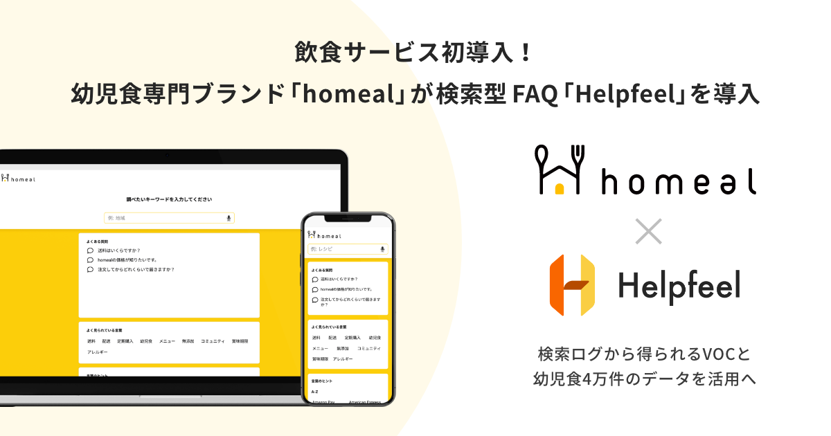 飲食サービス初導入!幼児食専門ブランド「homeal」が検索型FAQ『Helpfeel』を導入