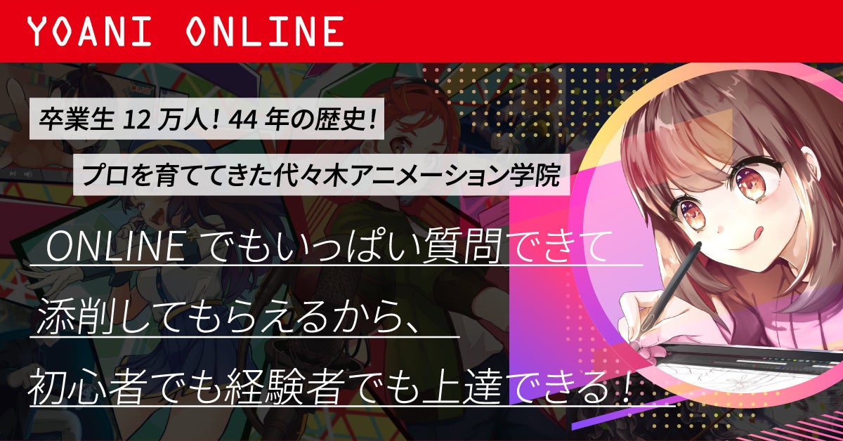 株式会社代々木アニメーション学院(本社:東京都千代田区神田三崎町1-3-9 代表取締役:橋本大輝)は、2022年5月20日より、オンライン型のイラスト通信教育講座「YOANI ONLINE」を開始致します。