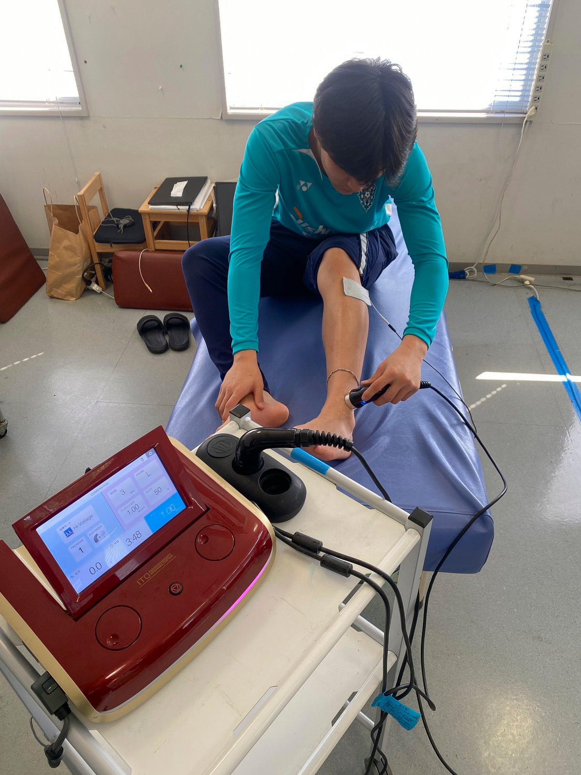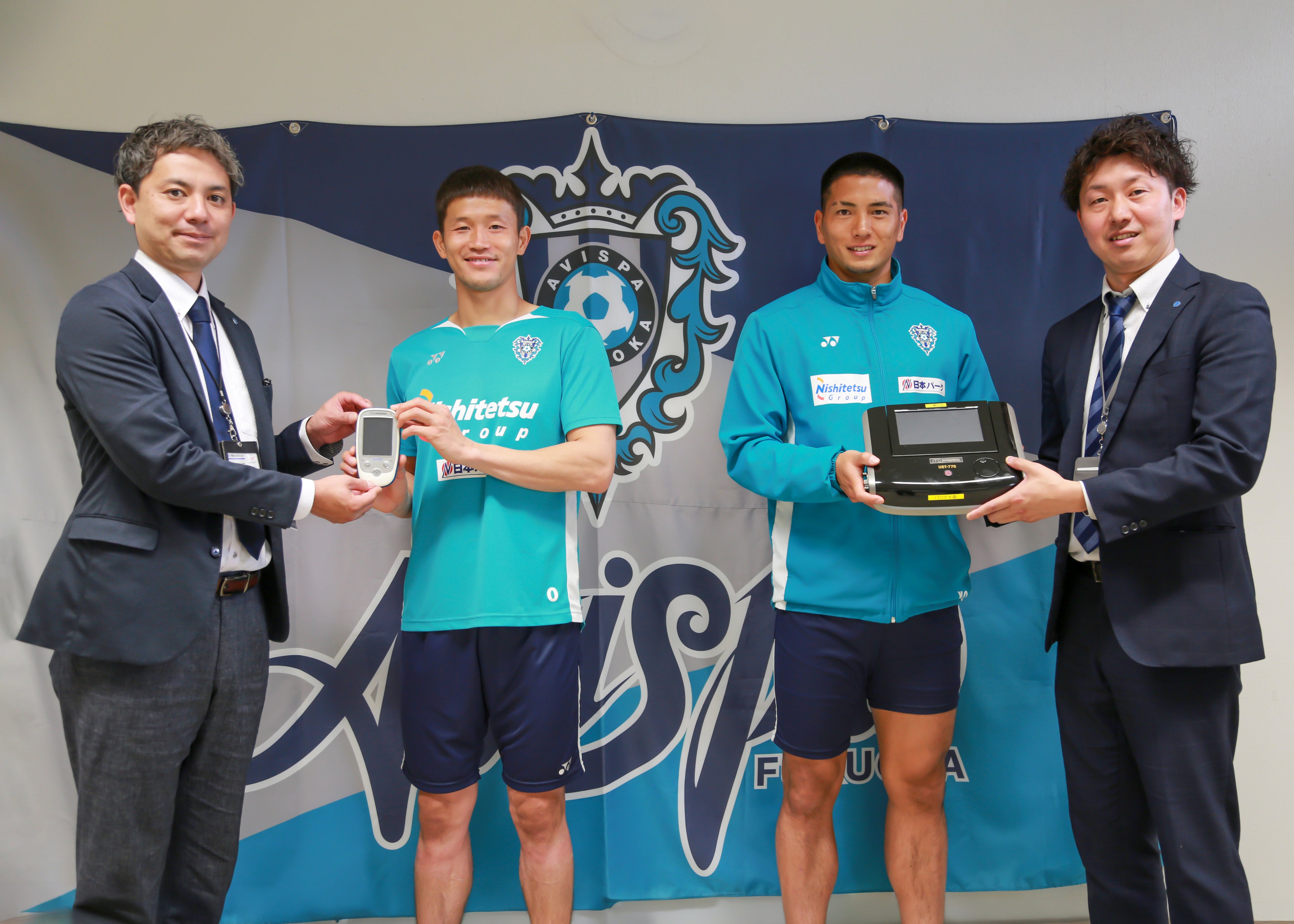 これまでもアビスパ福岡では、選手のコンディション管理に小型低周波治療器や超音波治療器等を積極的に活用していましたが、より迅速に適切なタイミングでケアができるように、この度、治療器の増設でサポートさせていただくことになりました。