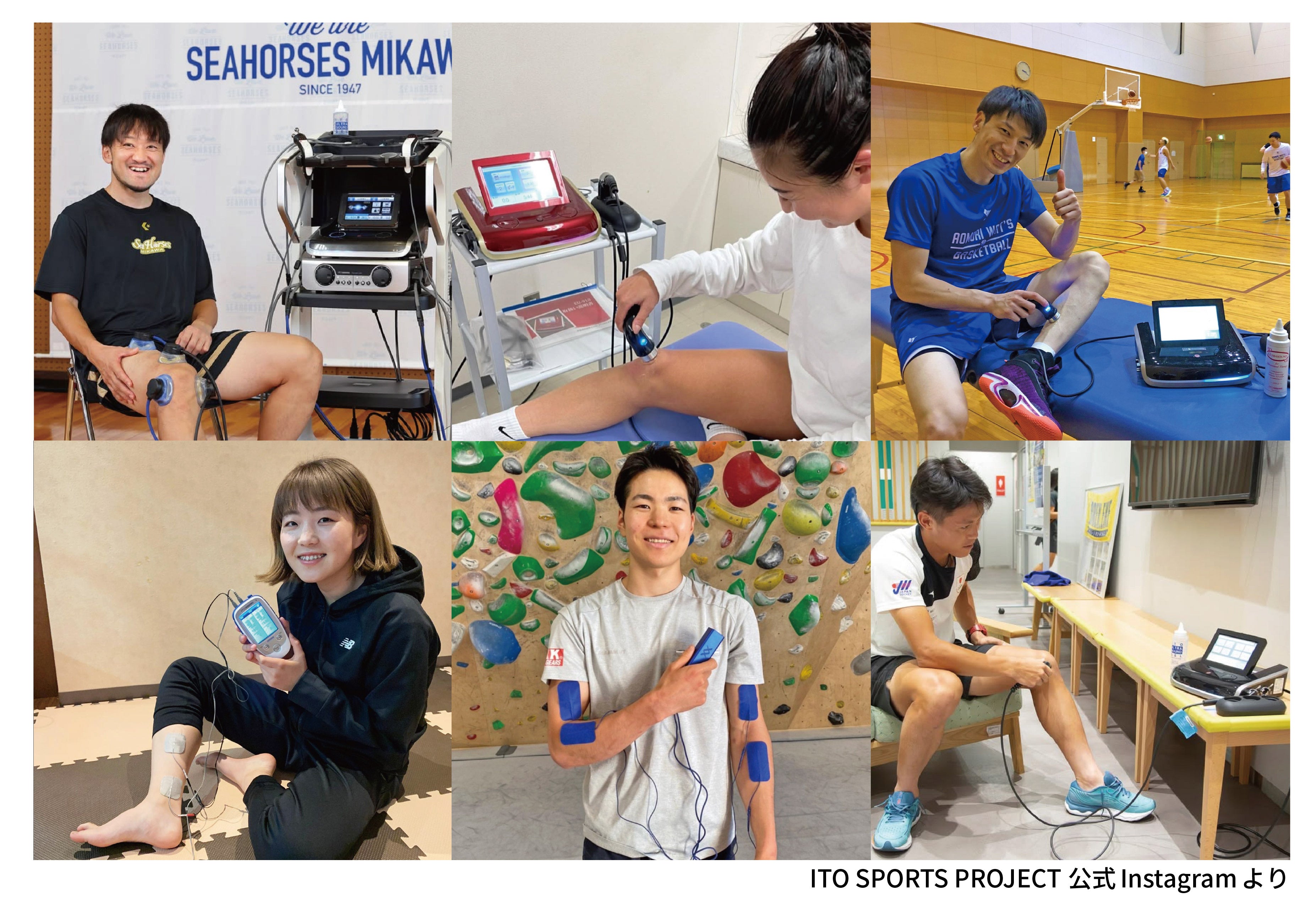 弊社がスポーツ分野で取り組む「ITO Sports Project」が始まったのは1999年のこと。スポーツ選手の日々のコンディショニングに低周波や超音波等のエネルギーをプラスして「ケガをしない身体作り」や「できるだけ早いケガや疲労からの回復」をサポートしています。