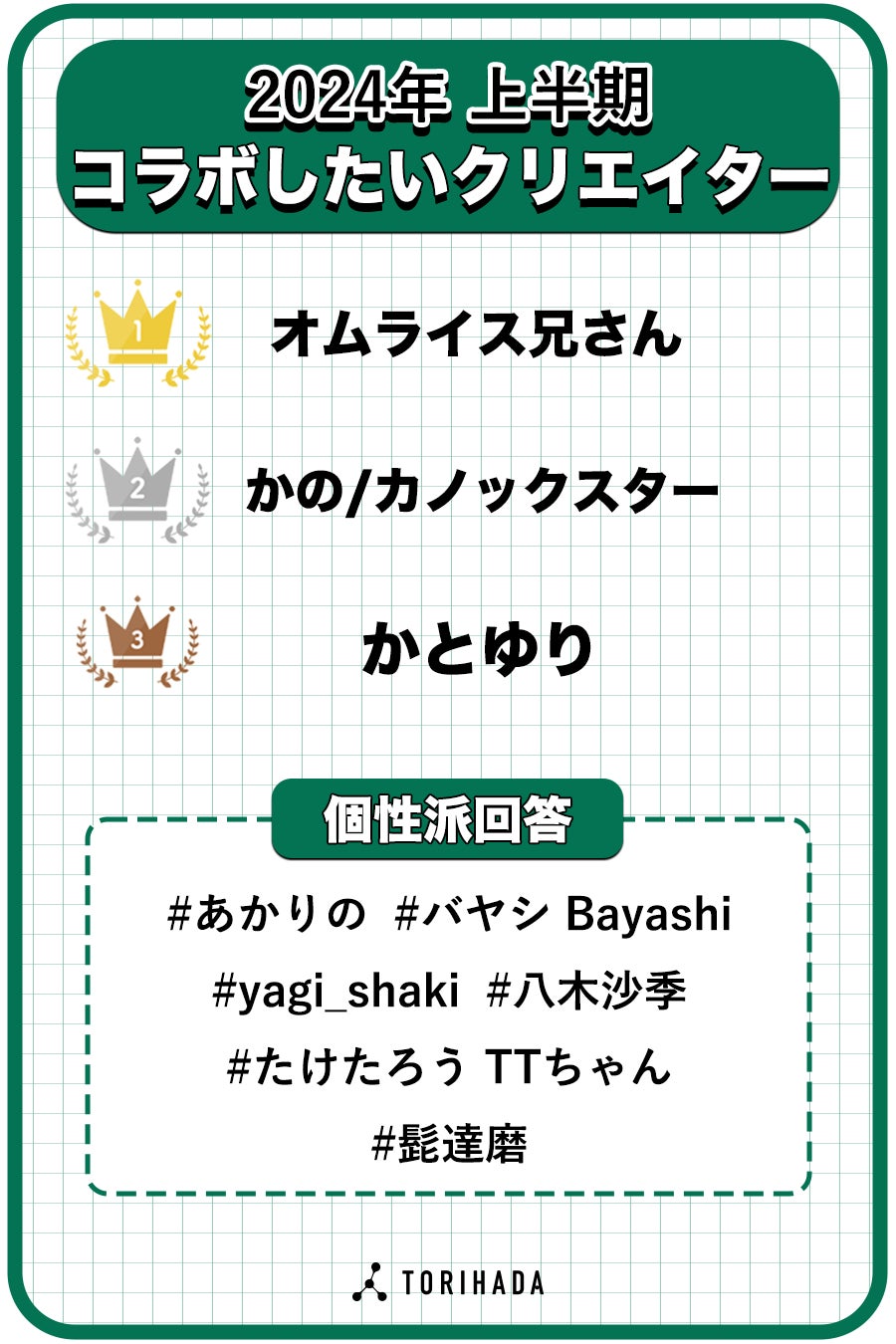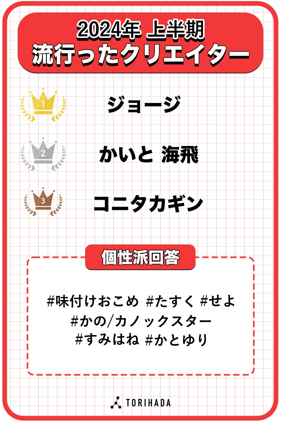 【TikTokクリエイター1,000人に聞いた】2024年上半期トレンドランキングをショートムービーマーケティングのTORIHADAが発表!