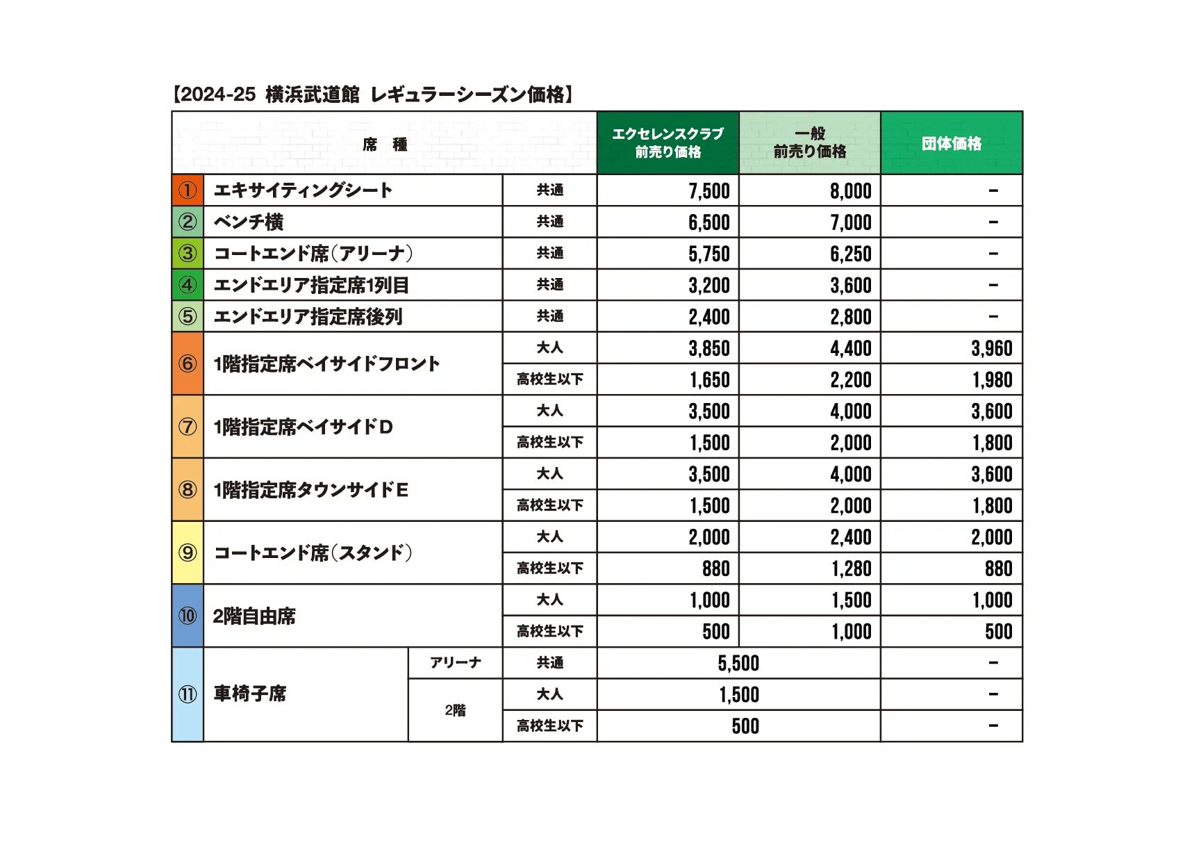 2024-25シーズン横浜エクセレンスホームゲーム全試合(13節26試合)