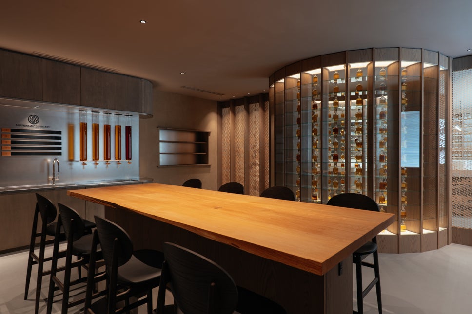 本来はクローズドな空間であるブレンダー室を、外部に開きながらも機密性を担保するための設計を実施。来訪者がウイスキーのブレンド体験を通じてブレンダーの技術を体感できるワークショップスペースを併設し、ブレンドの深奥に触れられる空間とした。