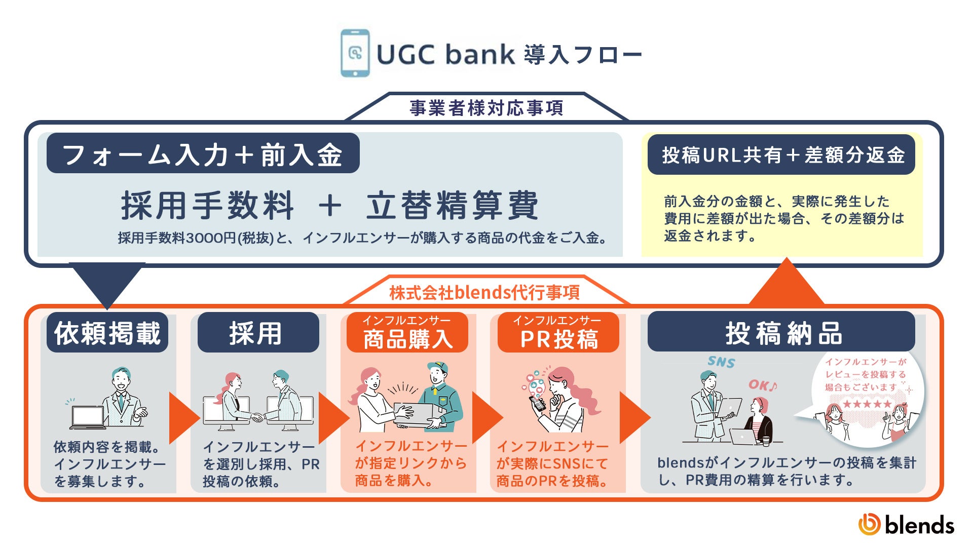 blendsが新たに提供する『UGC bank(ユージーシーバンク)』は、8万人超のインフルエンサーを活用したUGC生成代行サービスです。