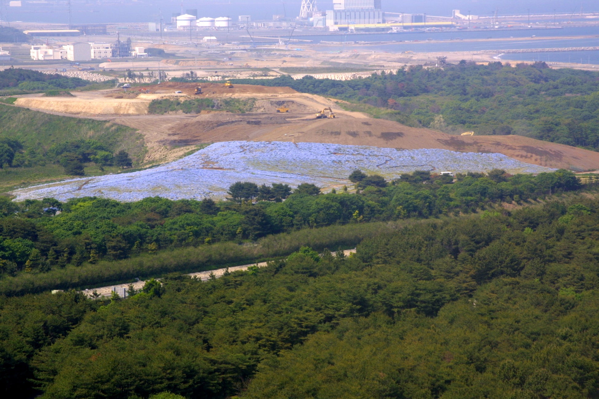 ネモフィラの咲くみはらしの丘は、公共工事の建設発生土を積み上げて造成した人口の丘です。ネモフィラは2002年からはじまり、当初は約1.5ha、約200万本を試験的に植栽していました。その後徐々に植栽の規模を増やしていき、現在の青一面の世界が生まれました。