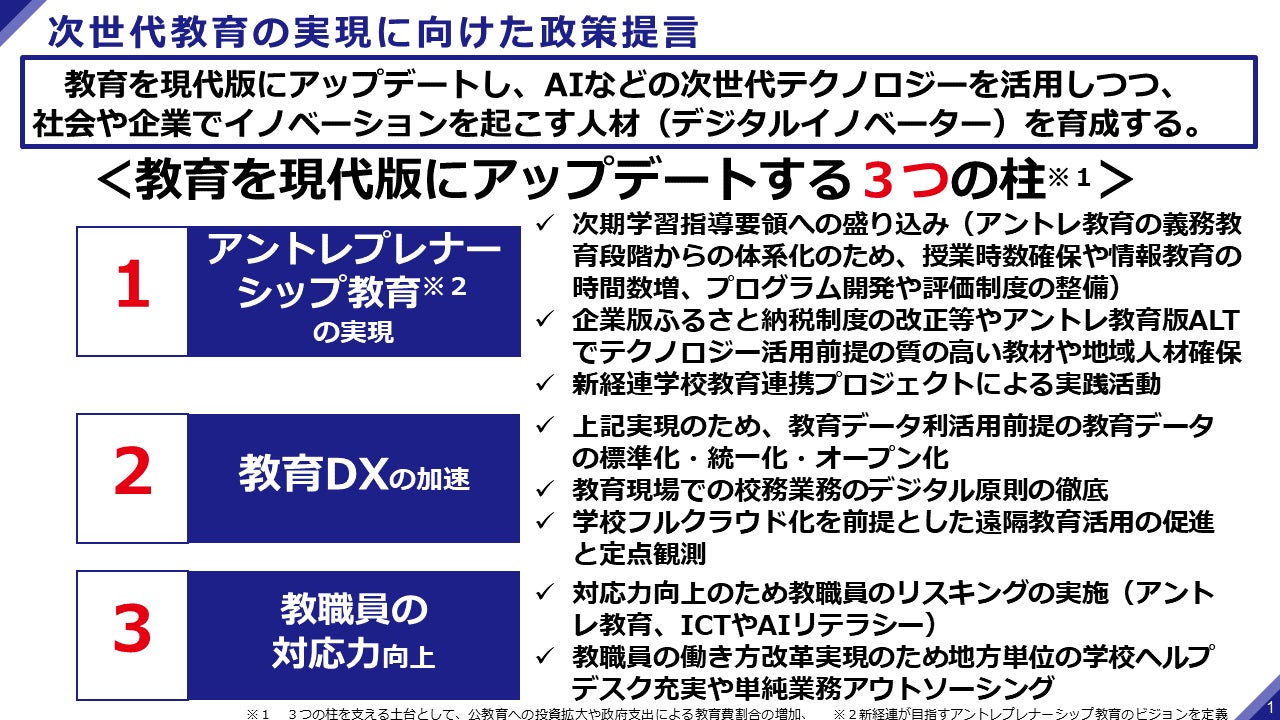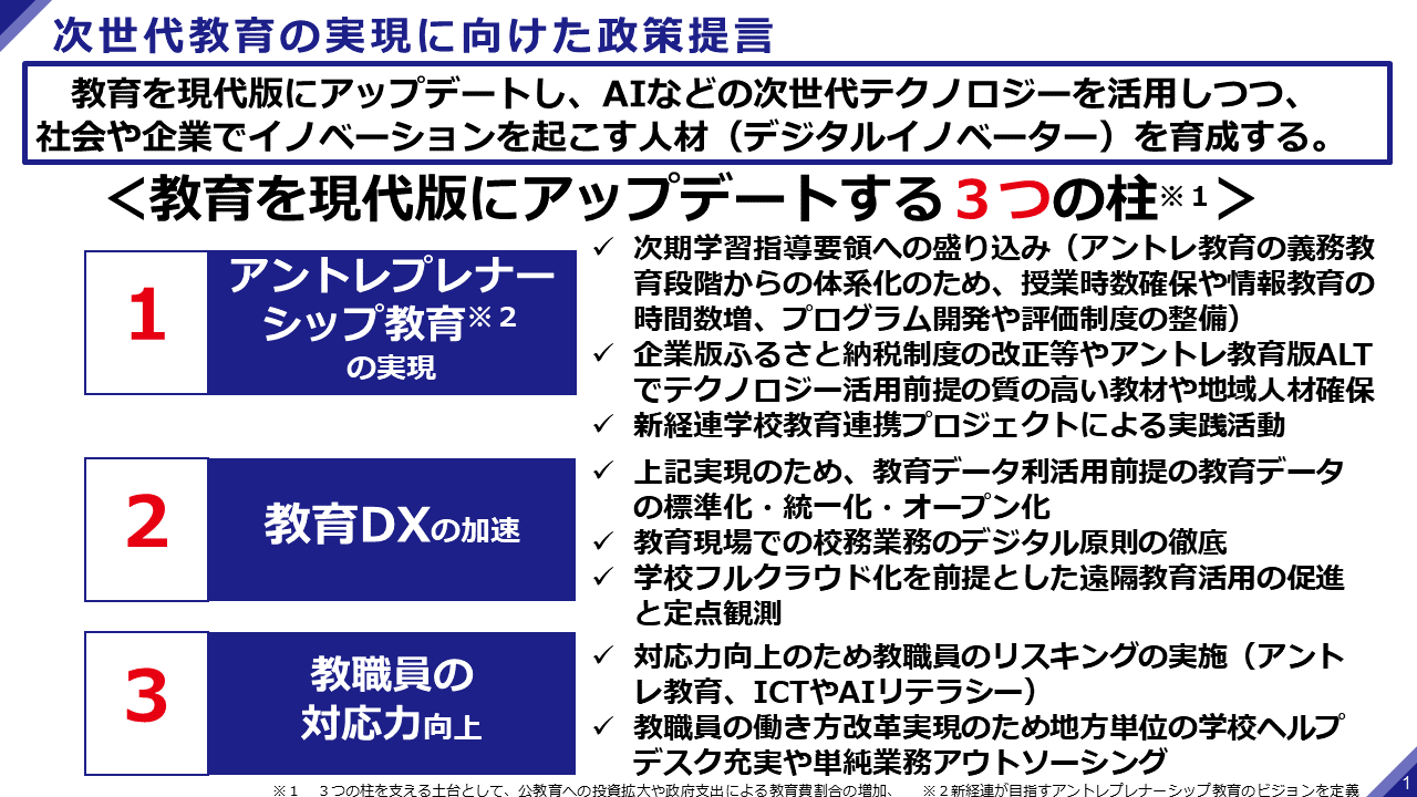 一般社団法人新経済連盟(所在地:東京都港区、代表理事:三木谷浩史)の次世代教育ワーキンググループは、2024年4月18日、「次世代教育の実現に向けた政策提言」を公表しました。