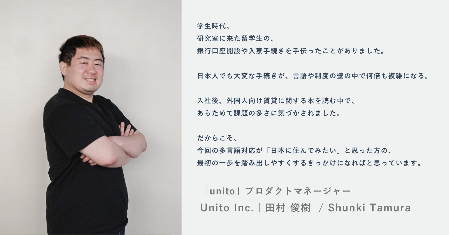 株式会社Unito(本社:東京都目黒区、代表取締役:近藤佑太朗、読み:ユニット、以下「Unito」)は、2025年3月25日より、最短即日入居できるお部屋探しプラットフォーム「unito」の多言語対応を開始しました。