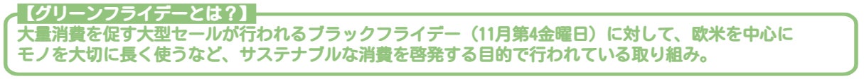 「GREEN FRIDAY」は、サステナブルな経済活動を考える取り組み。