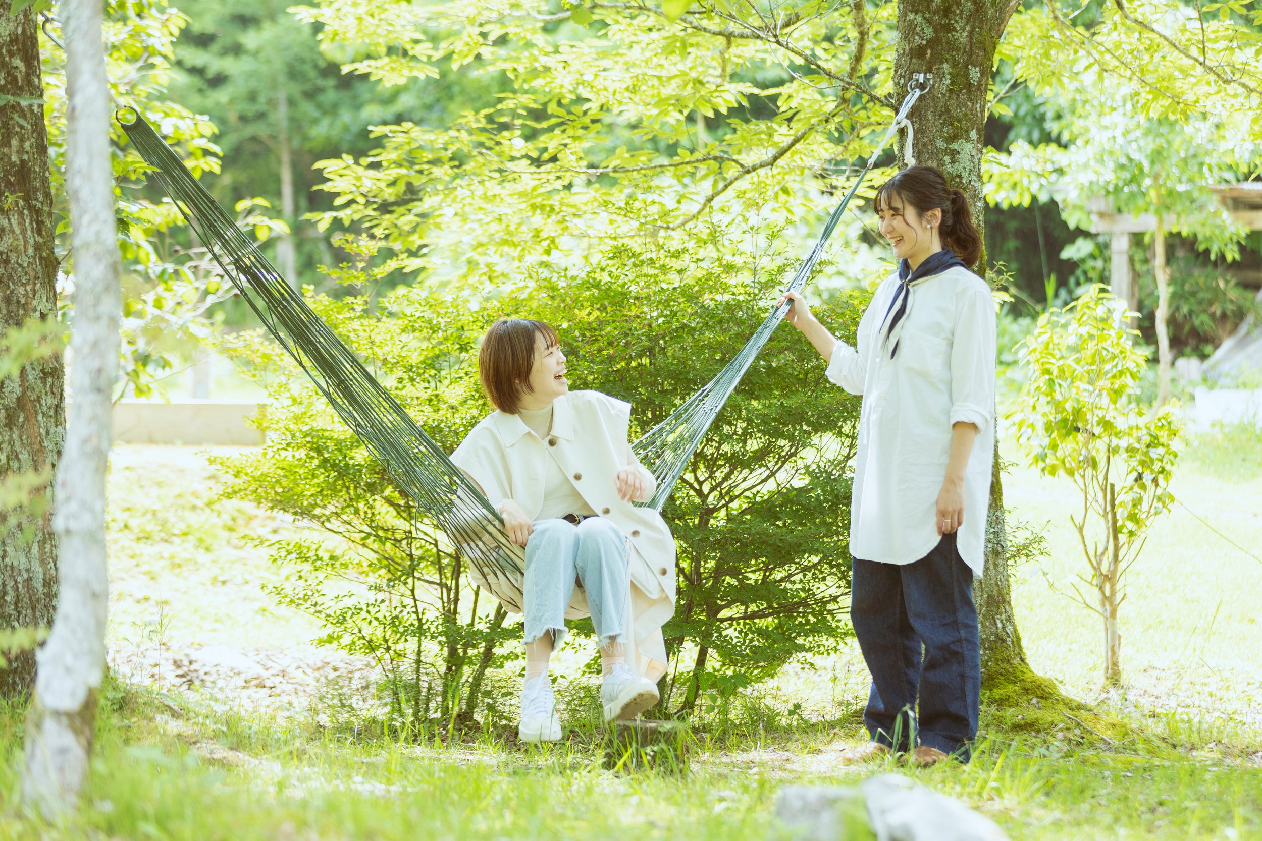 薪やセルフロウリュで、周りの目を気にする事なくお好みの湿度や温度に調整可能。テント内で身体を芯からしっかりあたためた後は、ハンモックやインフィニティチェアの上で三瀬の冷たい風を感じながらの外気浴をお楽しみください。