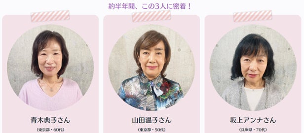 2023年9月に雑誌・WEBで「ブルームプロジェクト」の参加者を募ったところ、72人もの多数のご応募をいただきました。書類選考と2回の面接を経て、今回「ブルームプロジェクト」に参加していただいた読者は、坂上アンナさん(70代)、青木典子さん(60代)、山田温子さん(50代)の3人です。