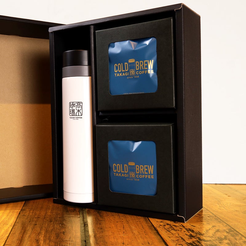 髙木珈琲オンラインショップでは真空ステンレスボトルとコールドブリューとのセットも販売中です。