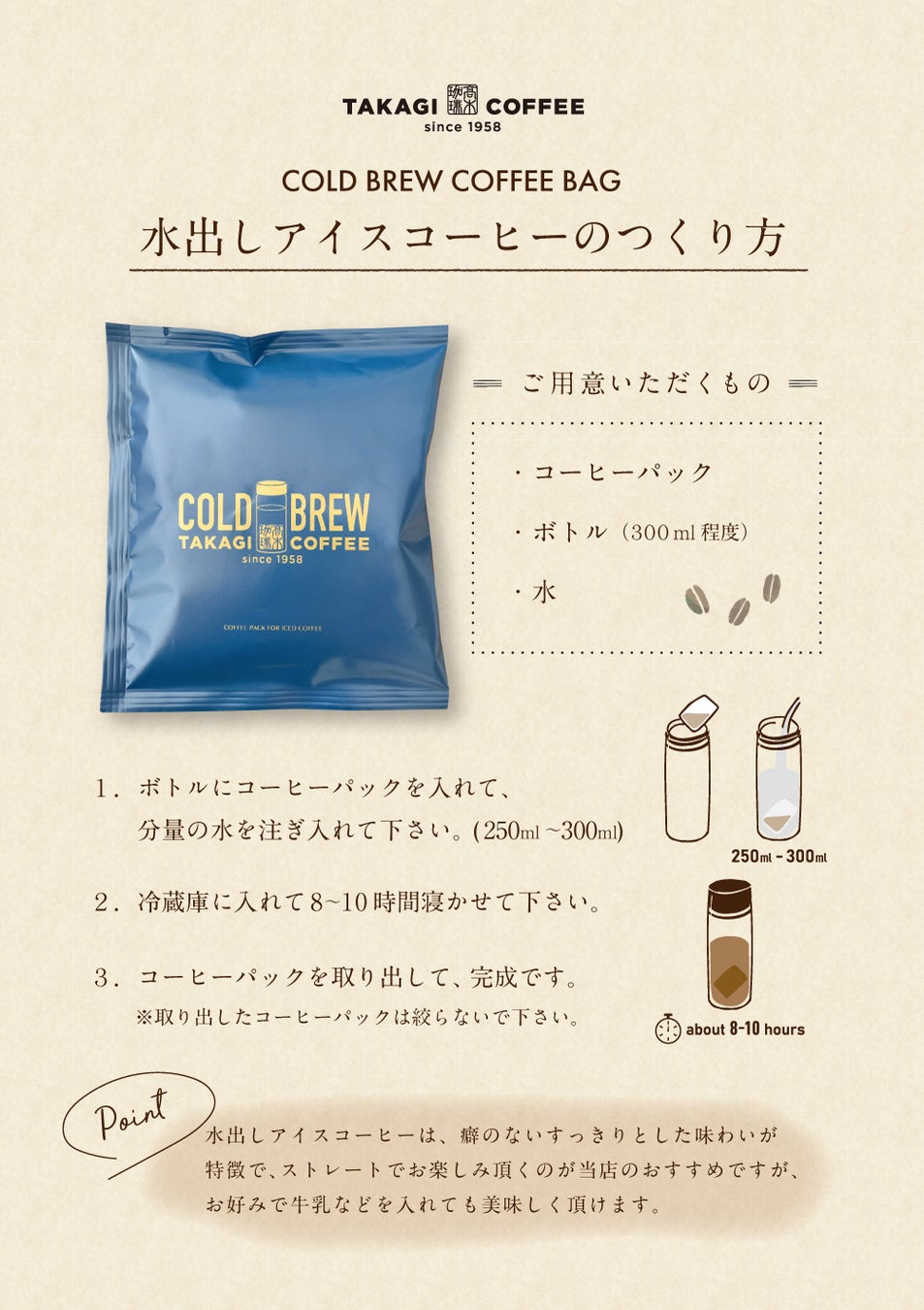 髙木珈琲では夏に向けてコールドブリューパックをご用意しています。