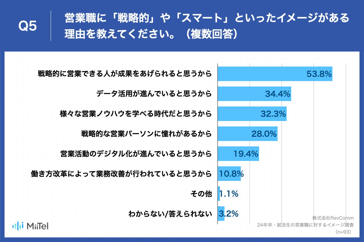 - 一方、「戦略的」「スマート」なイメージ理由、半数以上が「戦略的に営業できる人が成果をあげられると思う」と回答