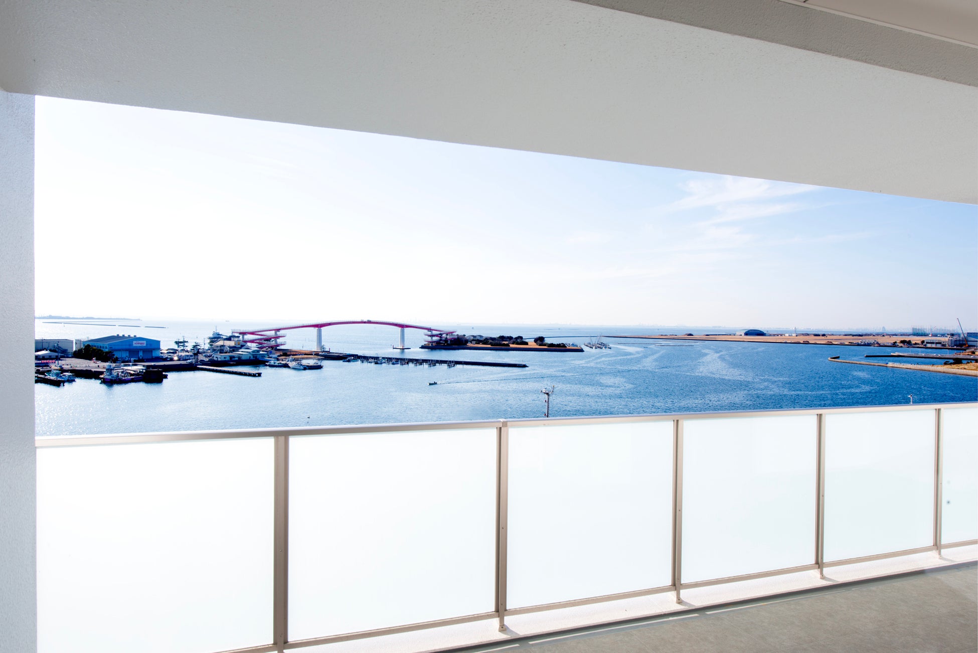 全64室、広さは47.7~77.88平方メートル。各住戸には東京湾を望むためのバルコニーが設置されており、清らかな白色の外観がリゾートの雰囲気を際立たせています。