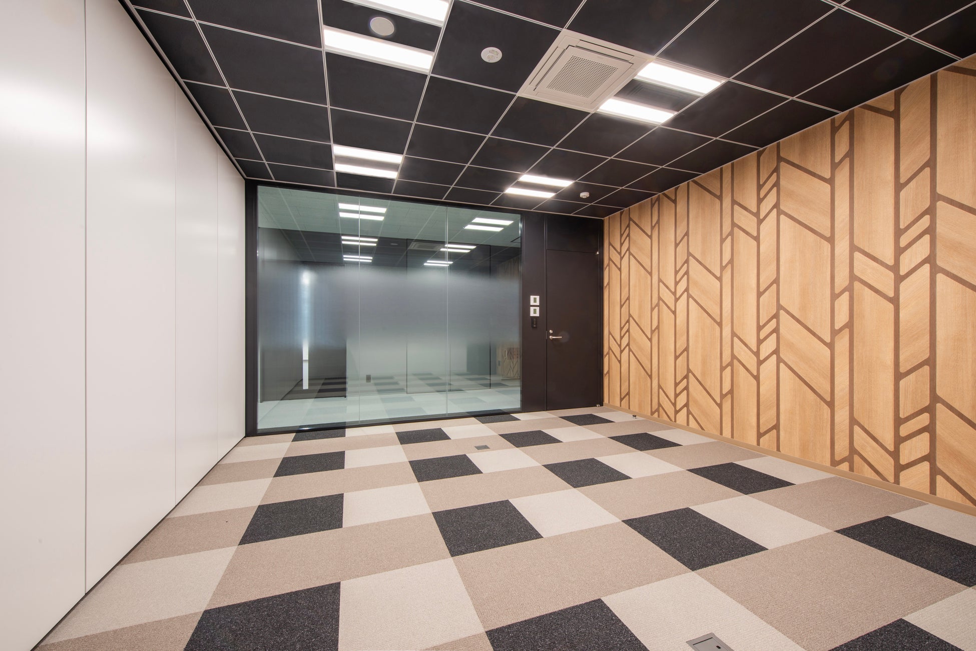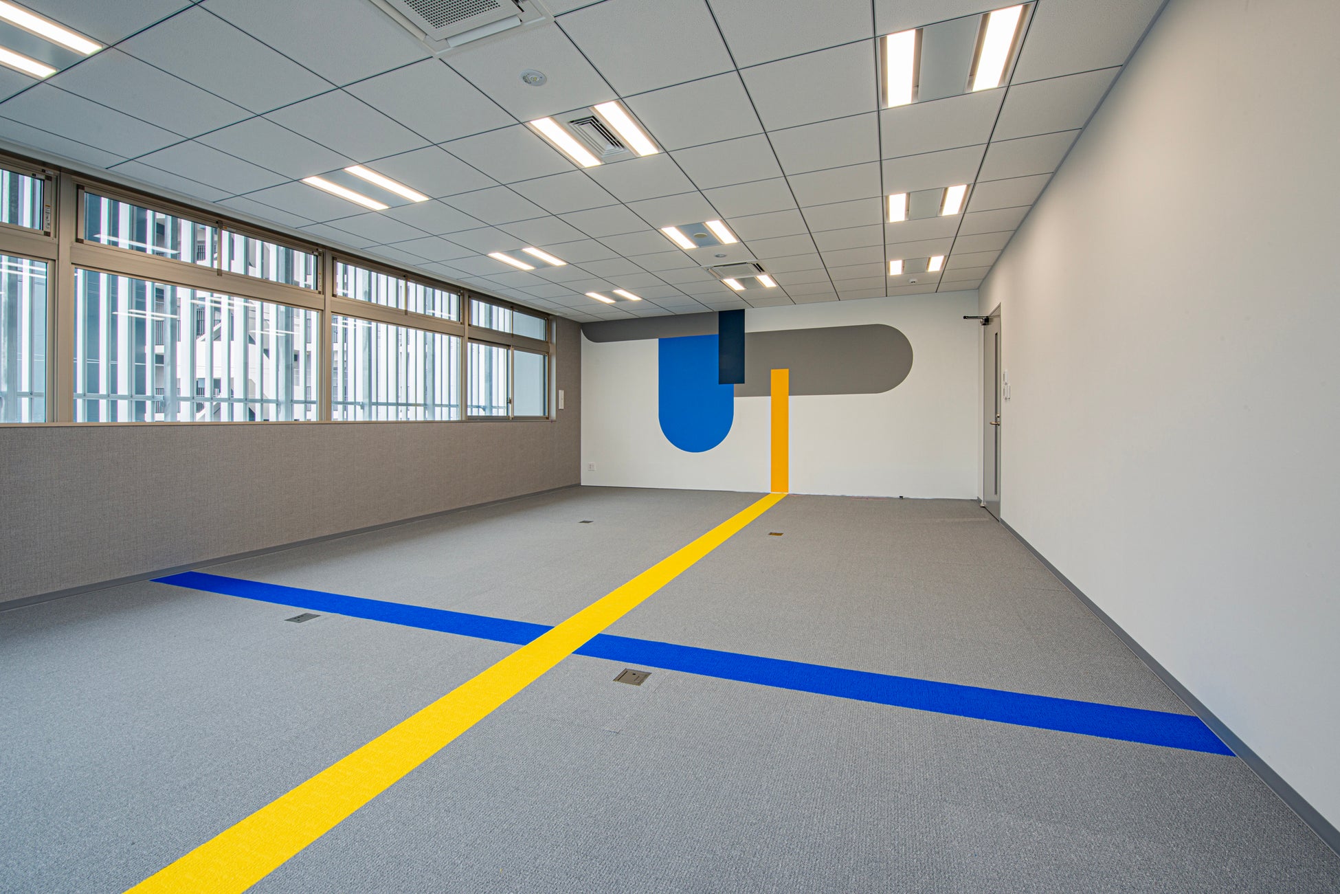 2階から3階に位置するオフィスは、ルーバーで周囲を囲み陽光を適度に遮断することで、快適な仕事環境を実現しています。事務室や会議室、打ち合わせ室などはそれぞれ色合いやデザインを変え、モチベーションアップを促進します。