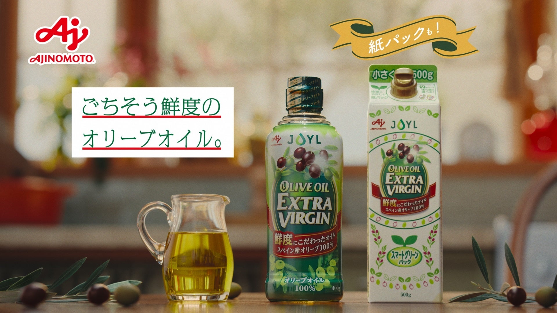 JOYL「AJINOMOTO オリーブオイル」シリーズは、1996年の発売以来、四半世紀にわたり多くのご家庭でご愛用いただいています。パッケージデザインを一新した今年3月には、環境に配慮した紙パック製品もラインナップに追加しました。