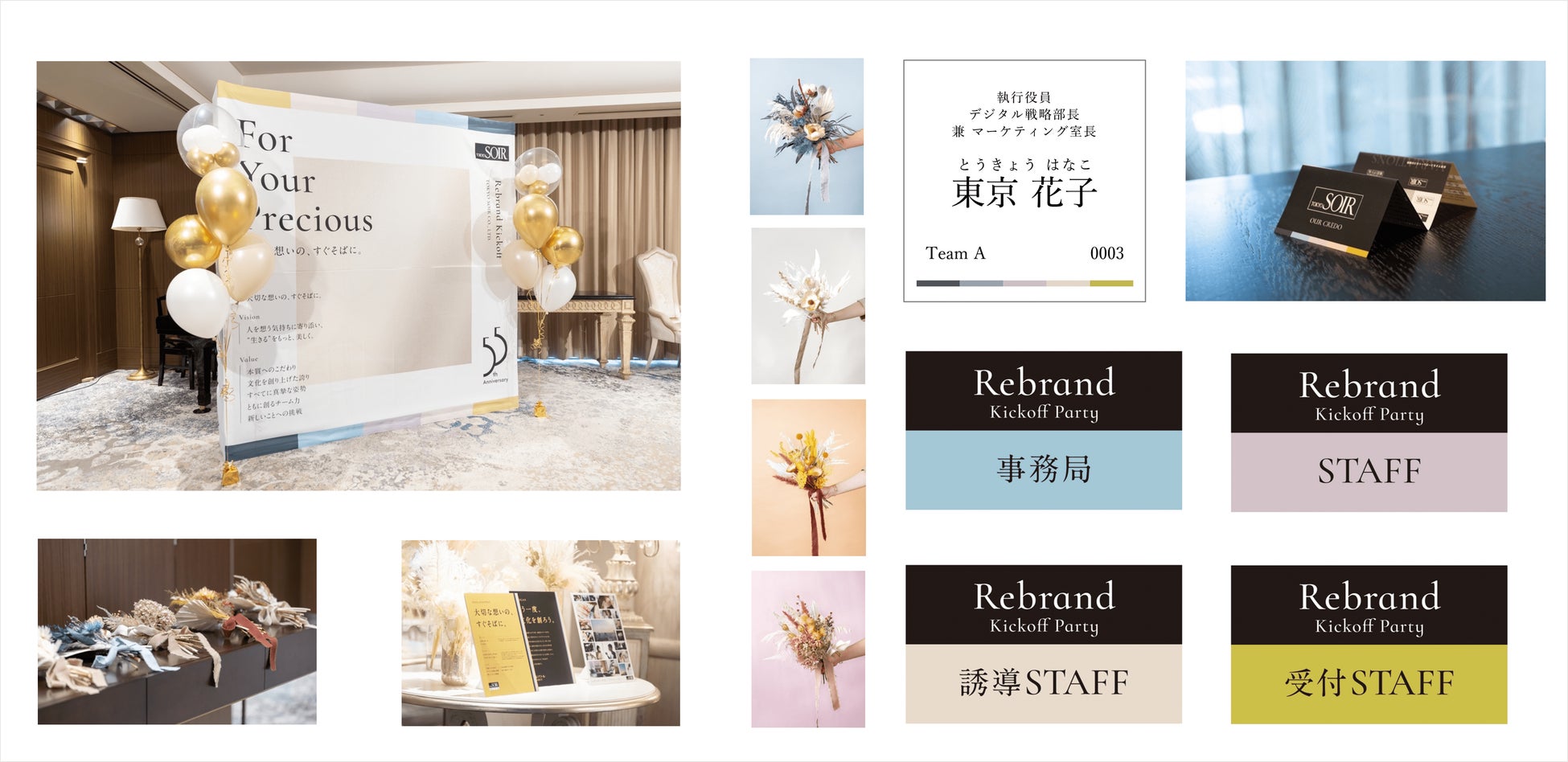 2023年12月、新しいブランドを社内に伝えるため、「Rebrand Kick-off Party」と称した社内発表会を都内のホテルで実施。イベントに向け、コンテンツの企画、ポスター、クレドカード、ブランドムービーなどのコミュニケーションツールの制作を進めていきました。