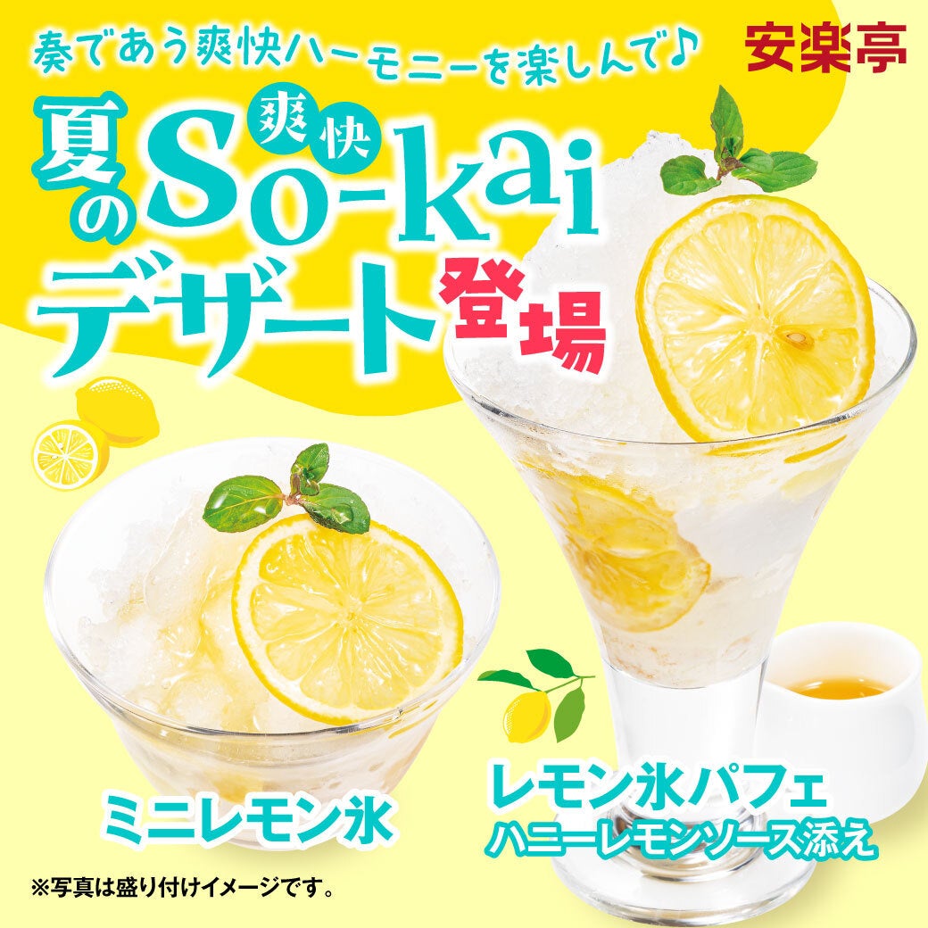 焼肉レストラン安楽亭(本社:埼玉県さいたま市、代表取締役:柳 先)は、2024年5月29日(水)から焼肉「ネギ塩レモン上タン」「ネギ塩レモンカルビ」をはじめ「レモン冷麺」「肉しゃぶ梅冷麺」、「レモン氷パフェ」など季節限定の味わいを楽しむ『夏の気分 So-kai(爽快)焼肉フェア』を開催します。
