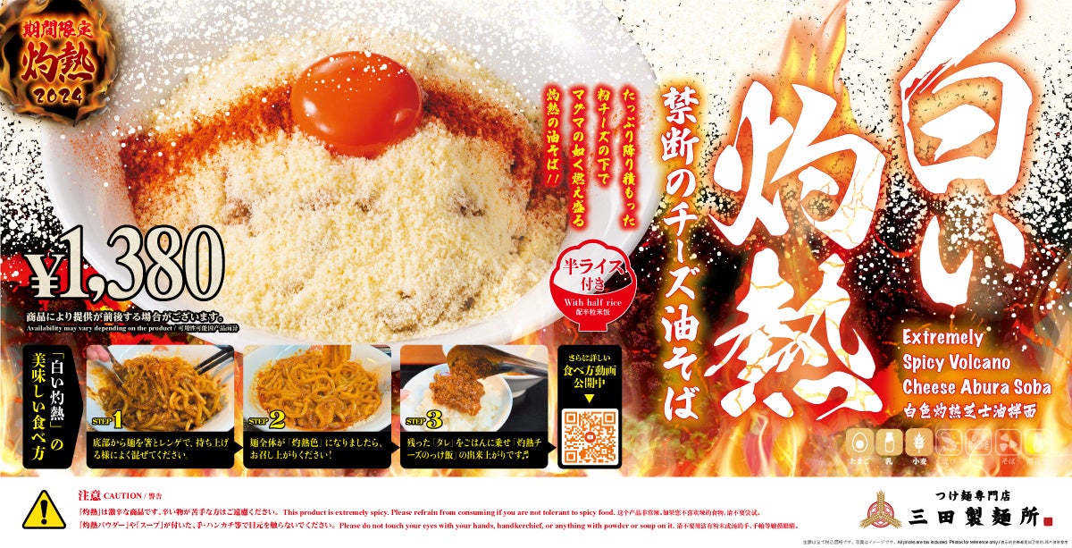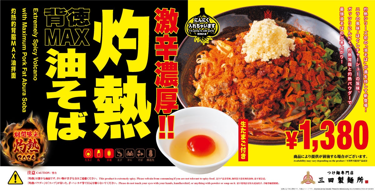 初登場から年々進化し続ける「灼熱つけ麺」は2024年13年目シーズン初の「油そば」への深化を果たします。