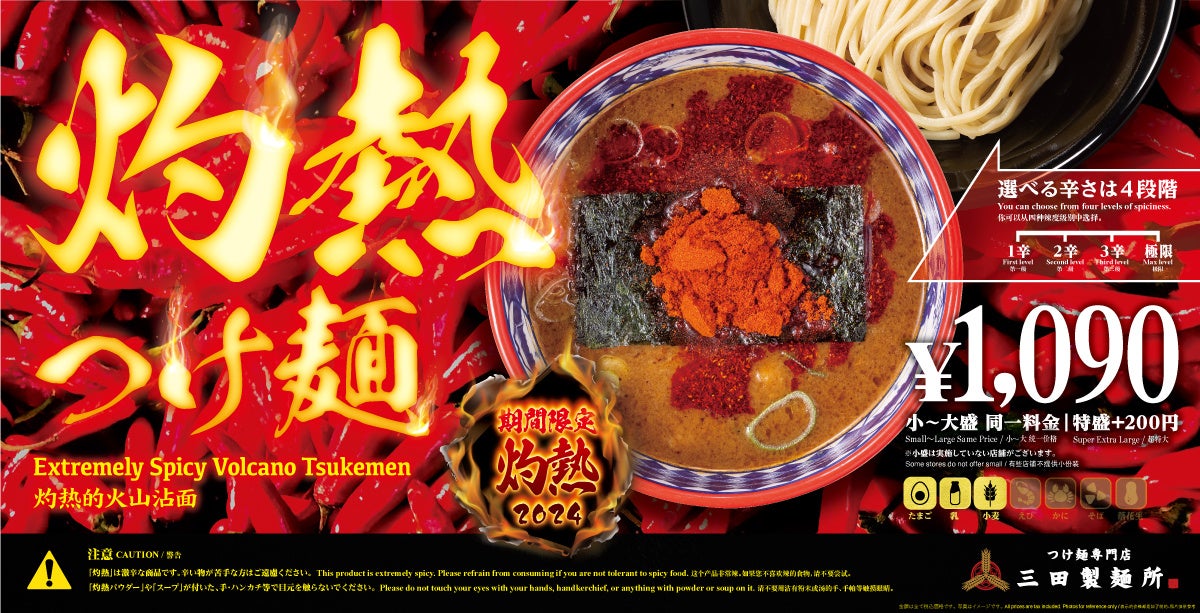 今年は定番の灼熱つけ麺に加え、見て楽しい・食べて美味しい2つの新商品を同時発売します。2024年暑い夏を三田製麺所がさらに熱くします!!