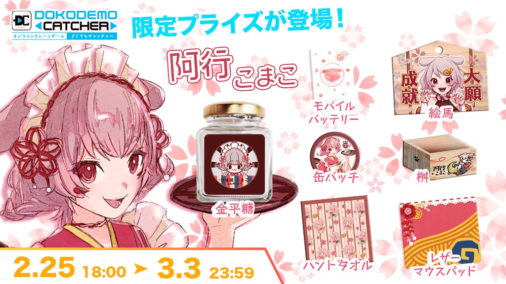 株式会社DC7(本社:京都府京都市 運営:大阪府大阪市)が運営するオンラインクレーンゲーム「どこでもキャッチャー」と、狛犬系Vtuber「阿行こまこ」さんとのコラボイベント開催をお知らせします。