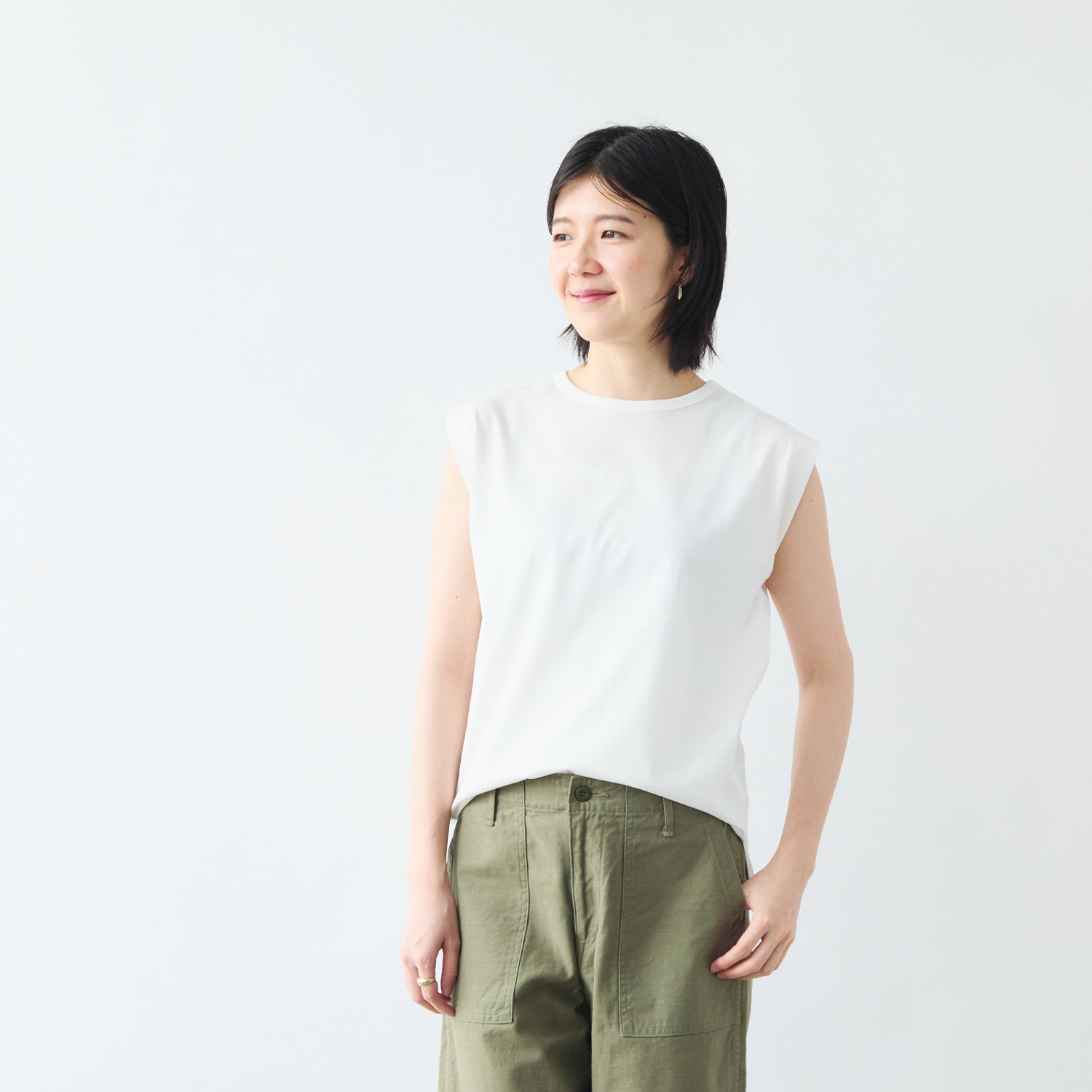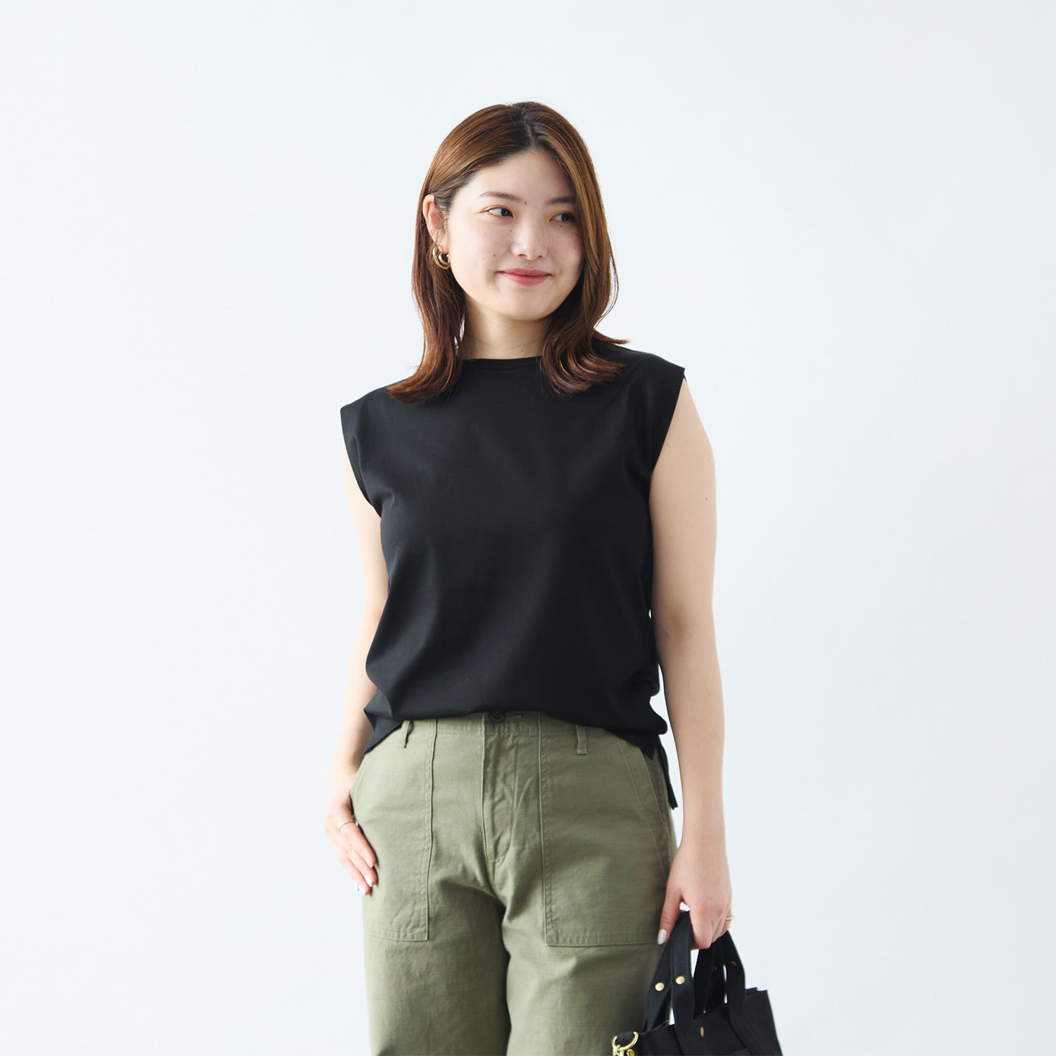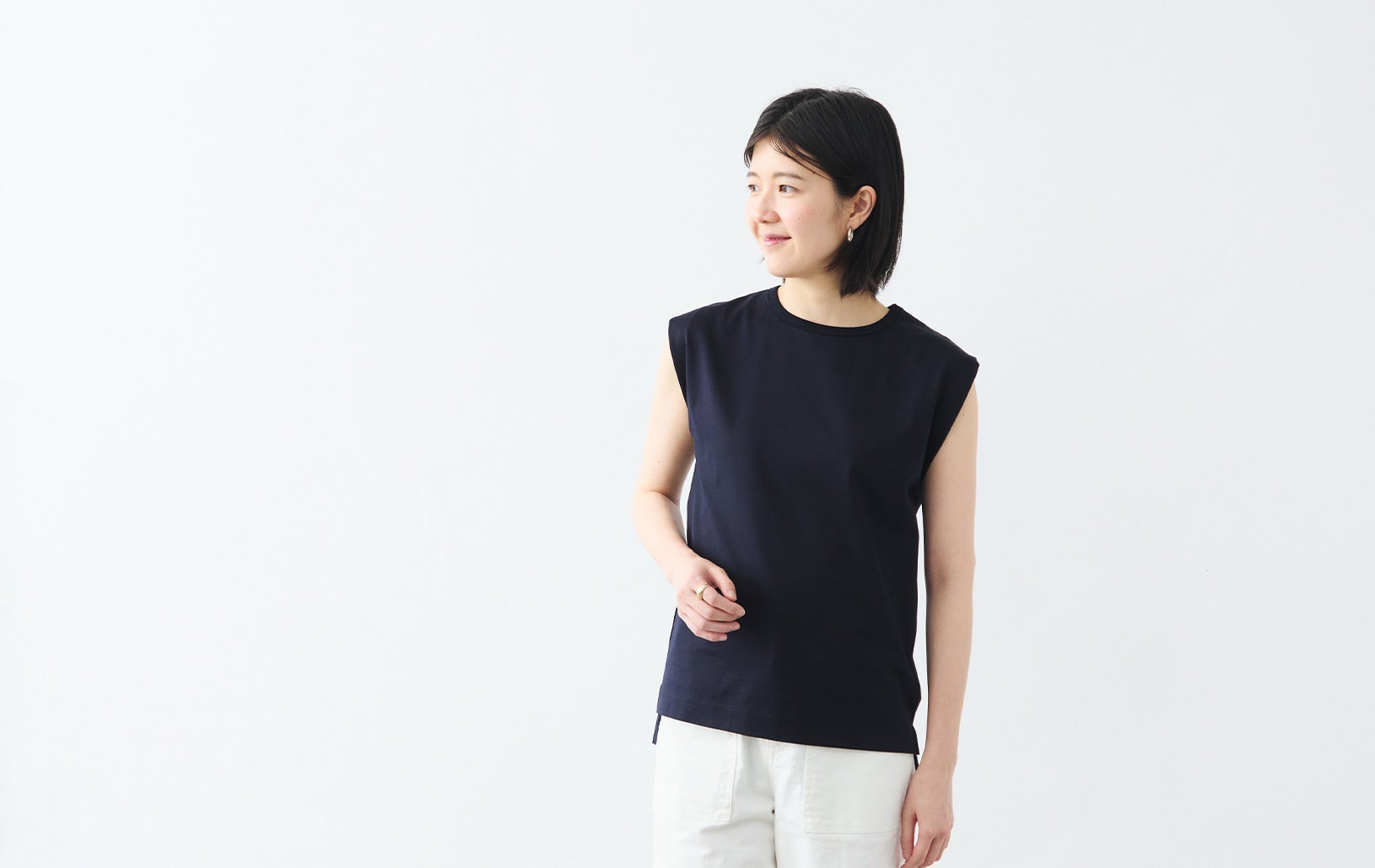 ファクトリエの定番素材「上質コットン100%シリーズ」から、ノースリーブが登場です。