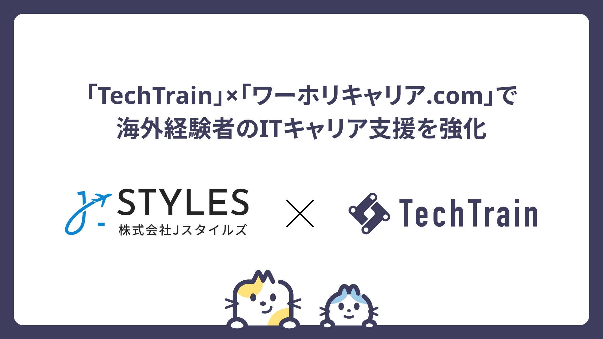 エンジニア育成・採用支援プラットフォーム「TechTrain」を運営する株式会社TechBowl(本社:東京都千代田区、代表取締役:小澤 政生)は、ワーキングホリデー・留学・海外経験者に特化したキャリア支援を行う株式会社Jスタイルズ(本社:東京都千代田区、代表取締役:平渡 淳一)と業務提携を締結しました。