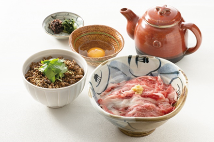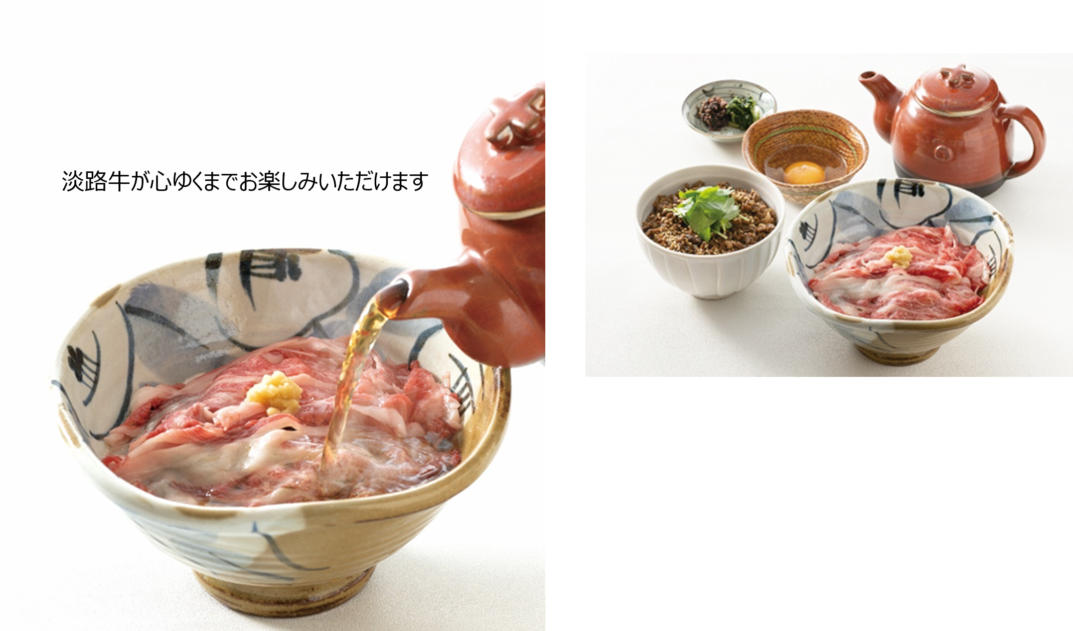 同じく溶き卵をかけて、ご賞味いただく淡路牛の時雨丼がセットの、この時期おすすめの贅沢メニューです。