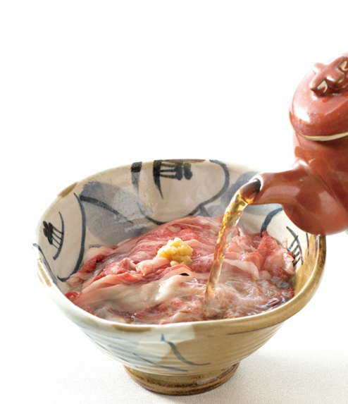 やや大きめのうどん鉢に、熱々の湯がきたてうどんを入れ、その上に、やわらかい淡路牛のしゃぶしゃぶ肉をうどんが見えないほど、ボリュームいっぱいに敷き詰め、更にその上から専用の調味だし汁をたっぷり注ぎかけて食べる風味豊かな贅沢うどん。お肉の色が変わったところが、お召し上がり時です。
