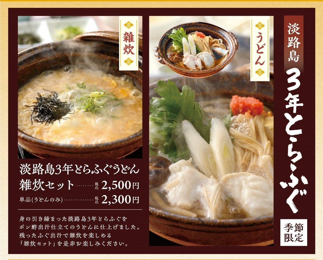 淡路島3年とらふぐを使用した2023年2月までの期間限定メニュー