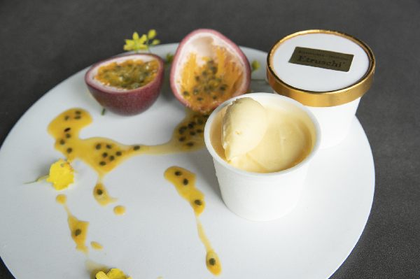 ジェラートはパッションフルーツ、ピーチ、ティラミスの3種。パッションフルーツとピーチのジェラートはフルーティーな香りが口いっぱいにふわっと広がり、ティラミスはエスプレッソの効いたリッチな味わいでシェフこだわりフレーバーをお愉しみいただけます。