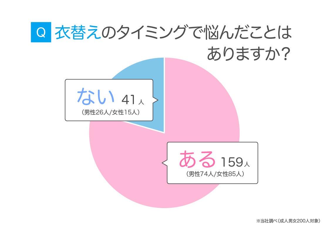 成人男女200人に「衣替えのタイミングで悩んだことはありますか?」と質問したところ、159人が「はい」と回答しました。