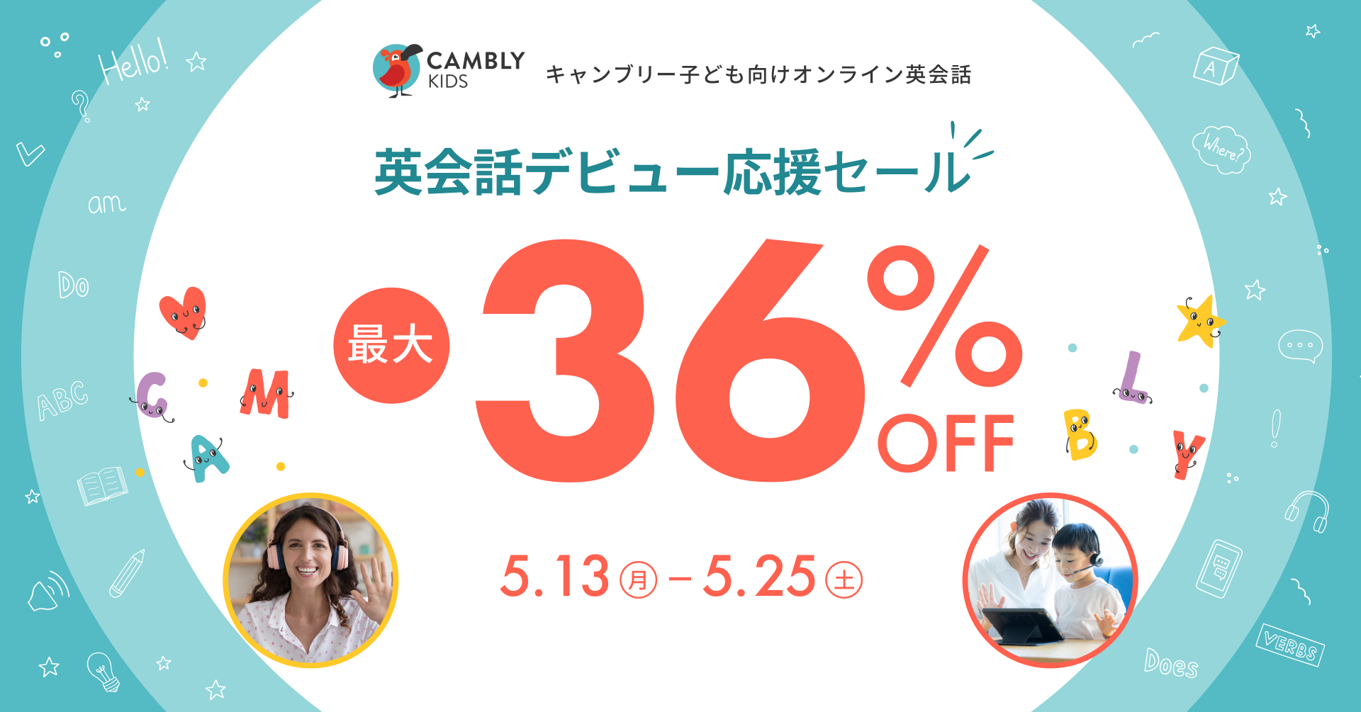 本日から5月25日(土)まで、全レッスンプラン最大36%オフのお得なセールを開催!ぜひこの機会に、おうちから世界中のネイティブ講師と英語が学べるCambly Kidsのレッスンにデビューしましょう。
