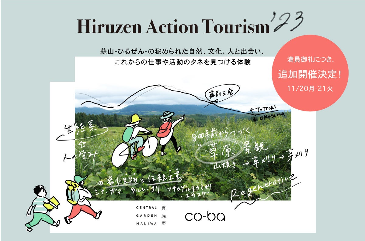 株式会社ツクルバ(本社:東京都目黒区 代表取締役:村上浩輝)が運営するシェアードワークプレイス「co-ba」は、2023年10月から11月にかけ、全国のクリエイターやビジネスパーソンを対象に、岡山県真庭市の蒜山(ひるぜん)地方の自然や文化、人と出会い、新しい事業やプロジェクトを生み出すことを目的とした「ひるぜんアクションツーリズムプログラム」を開催します。