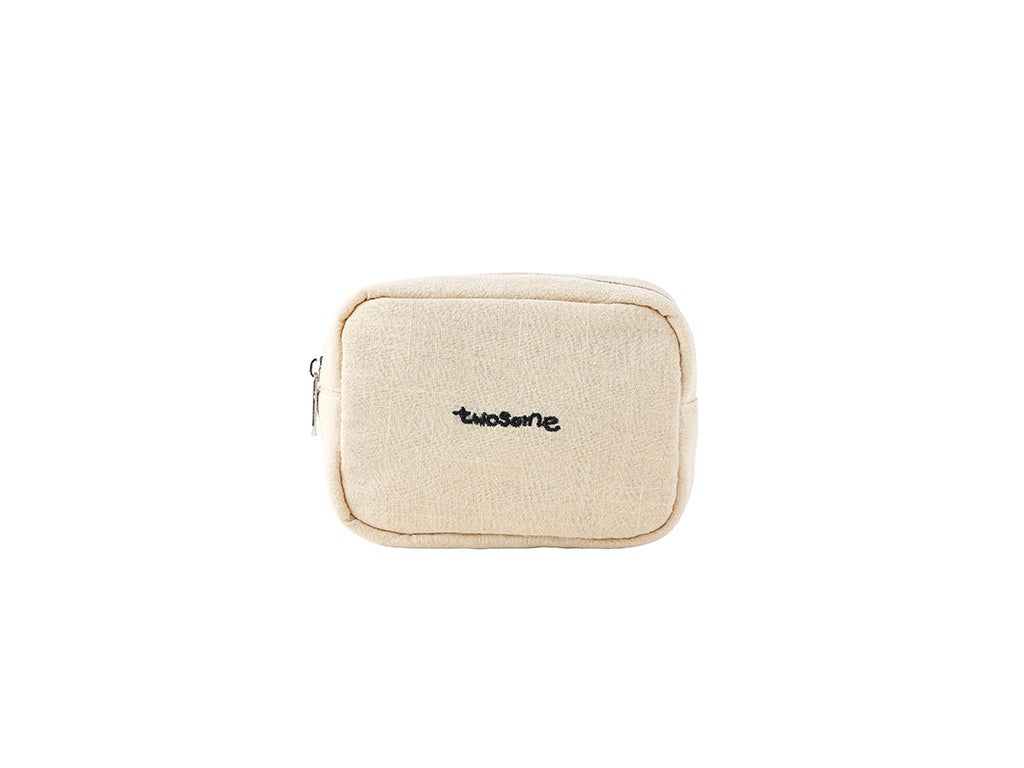 コットン素材のふんわりとしたシルエットが特徴的なデザインで、コスメなどかさばる小物もまとめて収納しやすく、コンパクトサイズで日常使いにぴったりなマチ付きのスクエアポーチです。