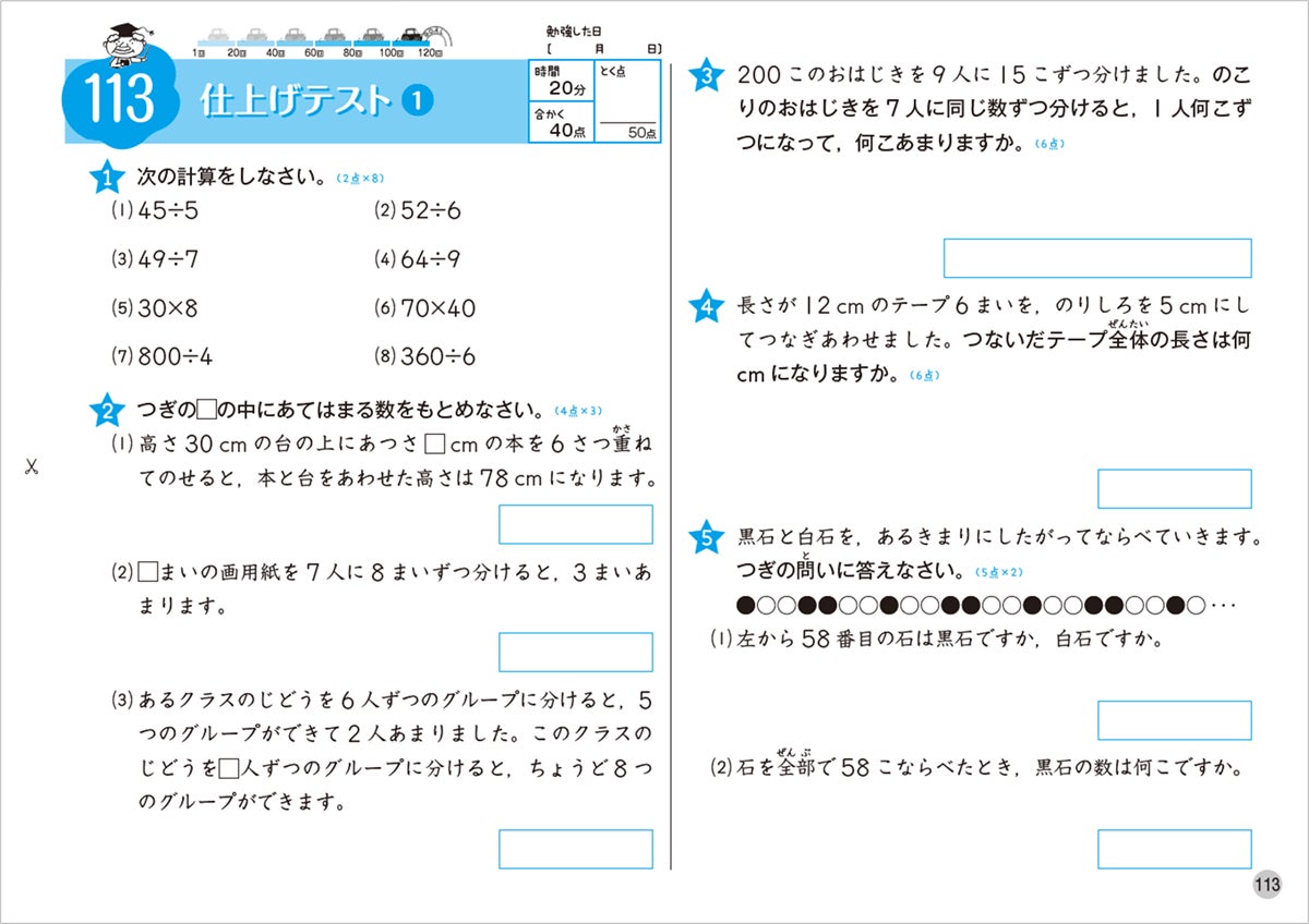 この本は中学受験をめざす小学生のための少し難易度の高いドリルです。計120回の問題で学習することができます。