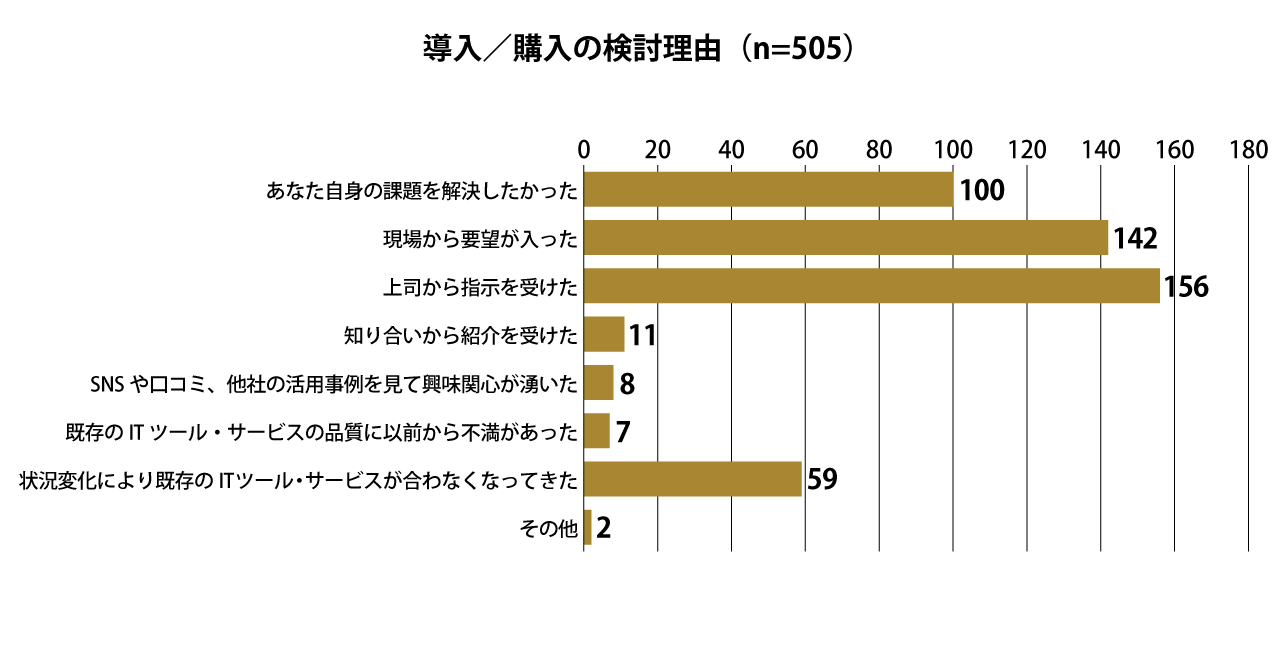 - 導入検討のきっかけは「上司に指示された」から