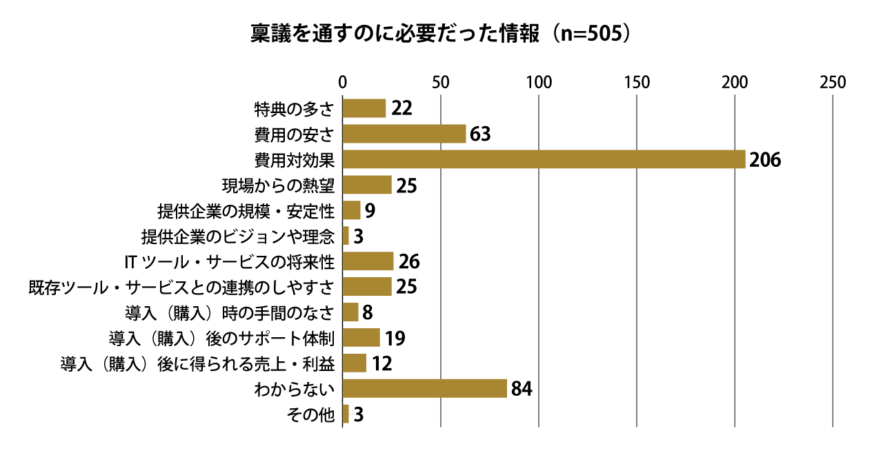 - 社内稟議を通すうえでもっとも必要な情報は「費用対効果」