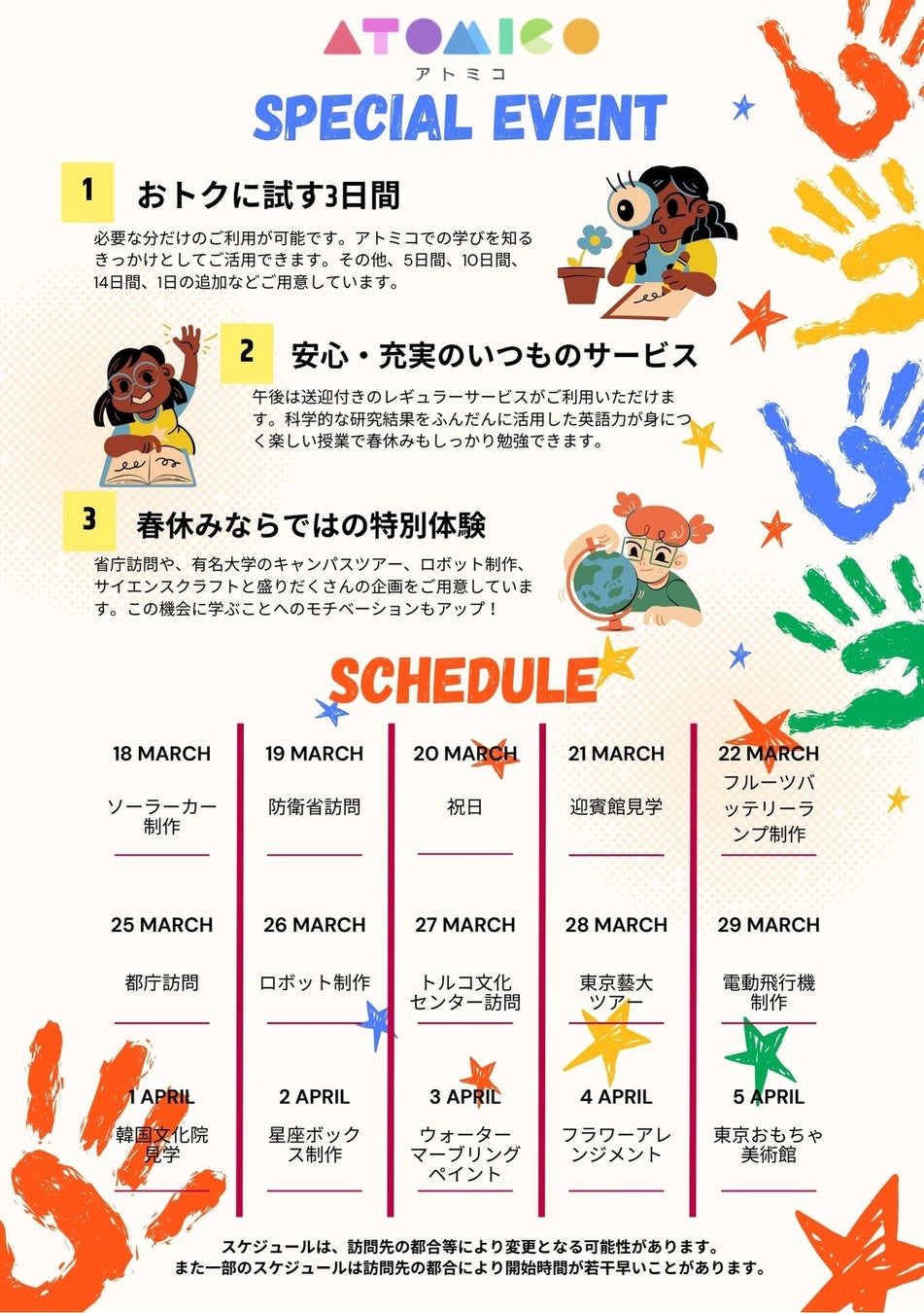 学童保育型英語スクール「atomico」、スプリングスクールを開催