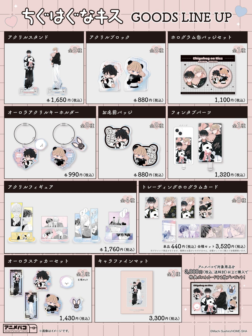 株式会社coly(本社:東京都港区赤坂、代表取締役:中島杏奈)が運営する「アニメバコ」(https://www.animebako.com/)は、株式会社ホーム社(本社:東京都千代田区、代表取締役:茂木行雄)の人気漫画『ちぐはぐなキス』(著:末広マチ)の描き下ろしイラストを使用した商品の販売や、各種キャンペーンを実施することをお知らせいたします。