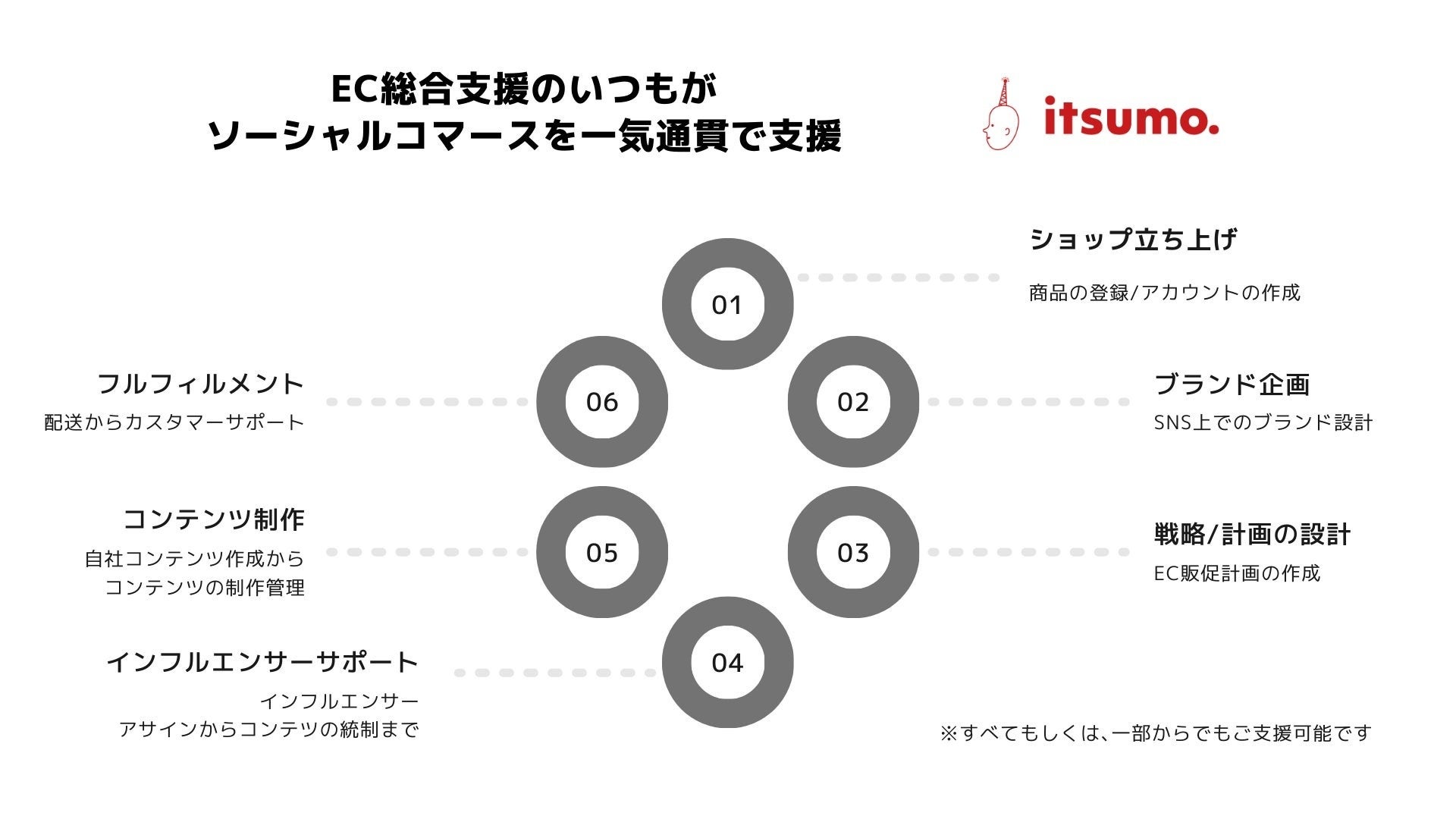 当社は「Eコマースで日本の未来をリードする」をミッションに掲げ、ブランド・メーカーへのEコマース事業総合支援・D2CおよびEコマースプラットフォーム運営を行う会社です。「人」と「テクノロジー」を組み合わせ卓越した「Eコマースで売るチカラ」で法人向け・消費者向け双方へのビジネスを展開しています。
