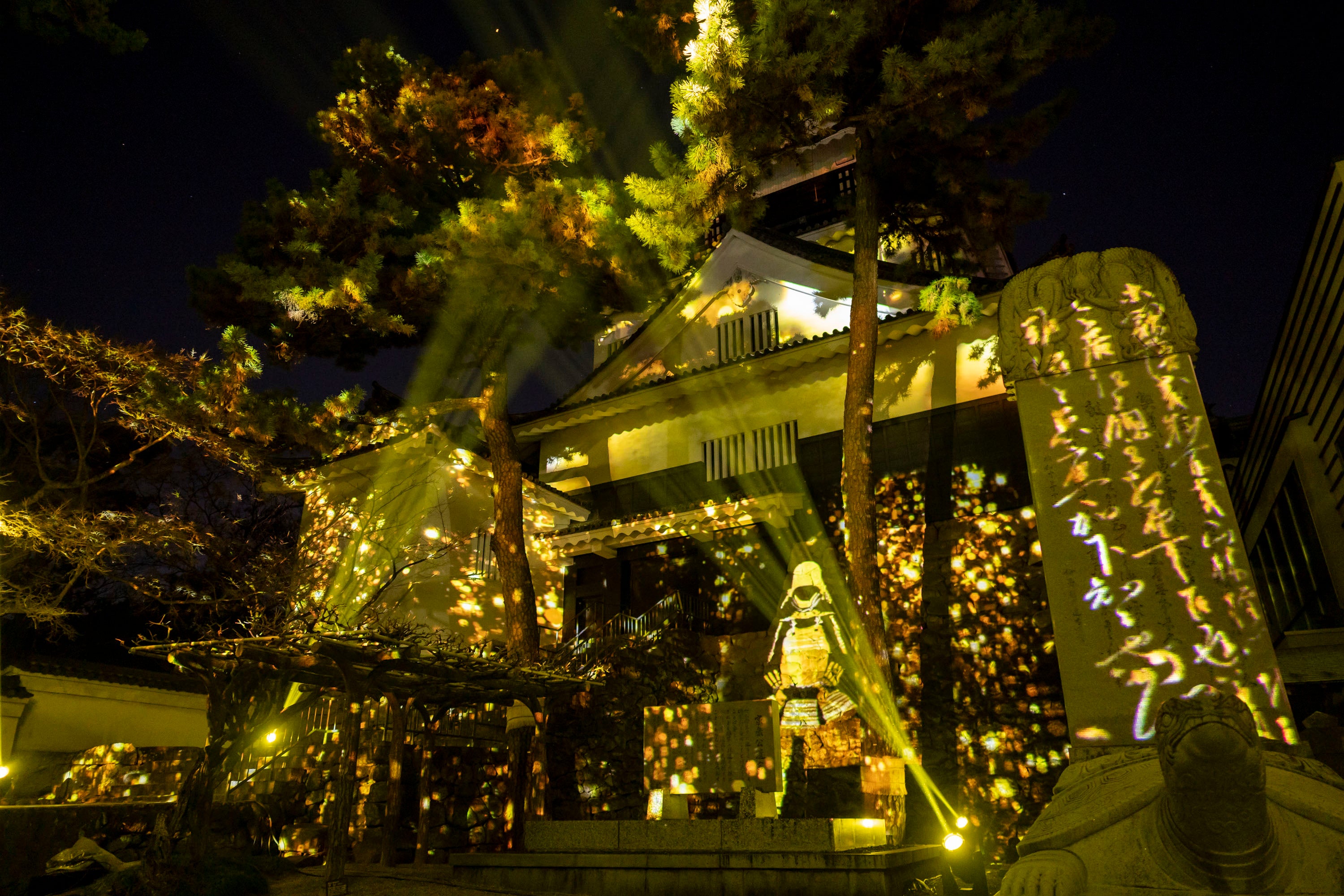 「どうする家康 岡崎 大河ドラマ館」のオープンに合わせて、徳川家康生誕の地で日本100名城・岡崎城天守閣に豪華絢爛なプロジェクションマッピング映像を投影。「岡崎公園デジタルライトアップ」も同時開催。