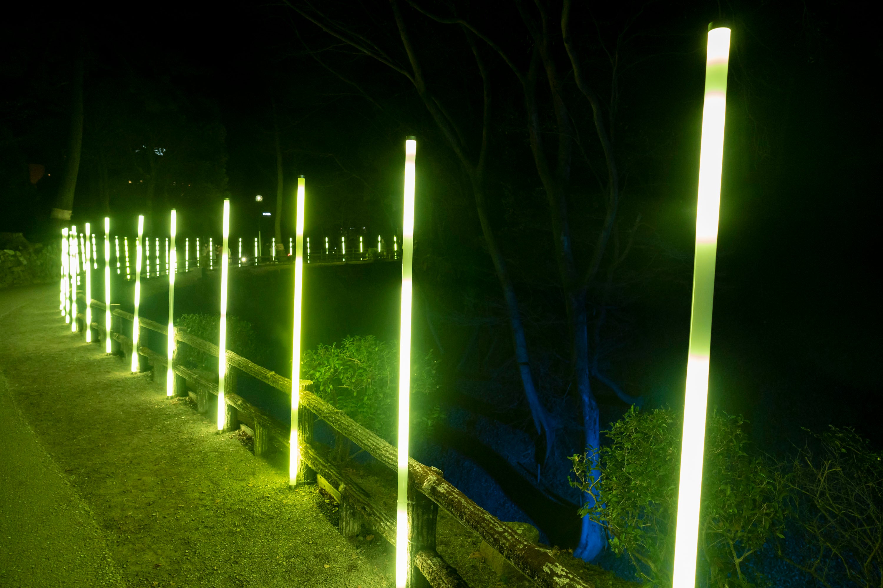 あわせて、プロジェクションマッピングと連動して、岡崎公園内のさまざまなスポットをデジタルライトアップで彩る「岡崎公園 デジタルライトアップ」を同時開催しました。