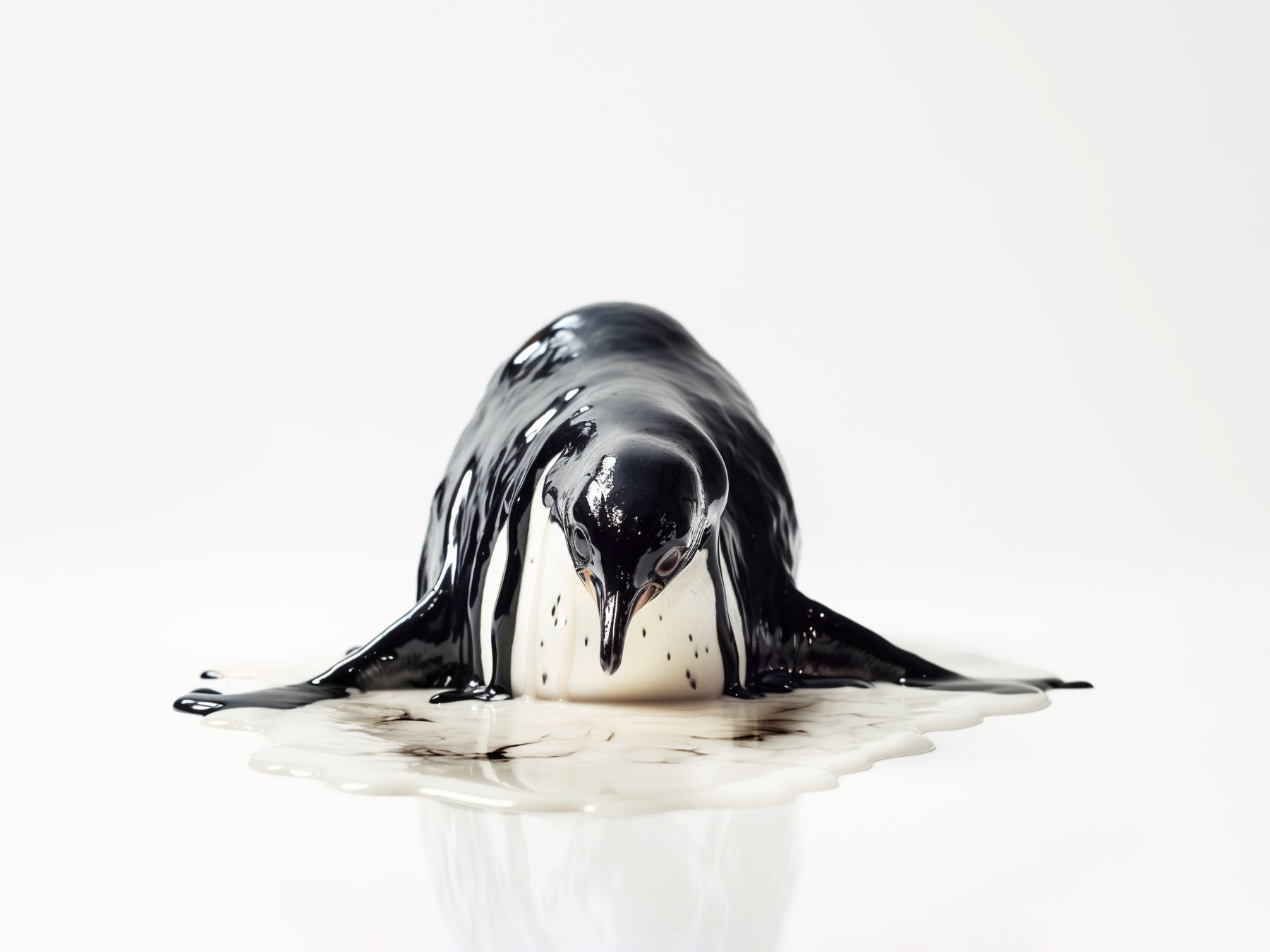 国際連合気候変動政府間パネル(IPCC)によると、世界の平均気温が産業革命以前の水準から2°C上昇すると、深刻な環境への影響が生じる可能性があるとされています。温暖化による2°Cの上昇は、生態系全体に大きな影響を及ぼします。特に北極圏や南極圏では、氷の減少が深刻な問題となり、シロクマやアザラシ、ペンギンなどの生物の生存に影響を及ぼす可能性が高いです。海氷の減少は、これらの生物の生息地や食料源に影響を与え、生存と繁殖を困難にする可能性があります。 本作品は、そのようなあり得るかもしれない未来の状況を想像し制作しました。まずは知ること。リサイクルと廃棄物削減。持続可能な消費行動など。私たちだけのものではないこの美しい自然や生態系が、このイメージのように取り返しのつかないことになってしまう前に。私たちもできることから。