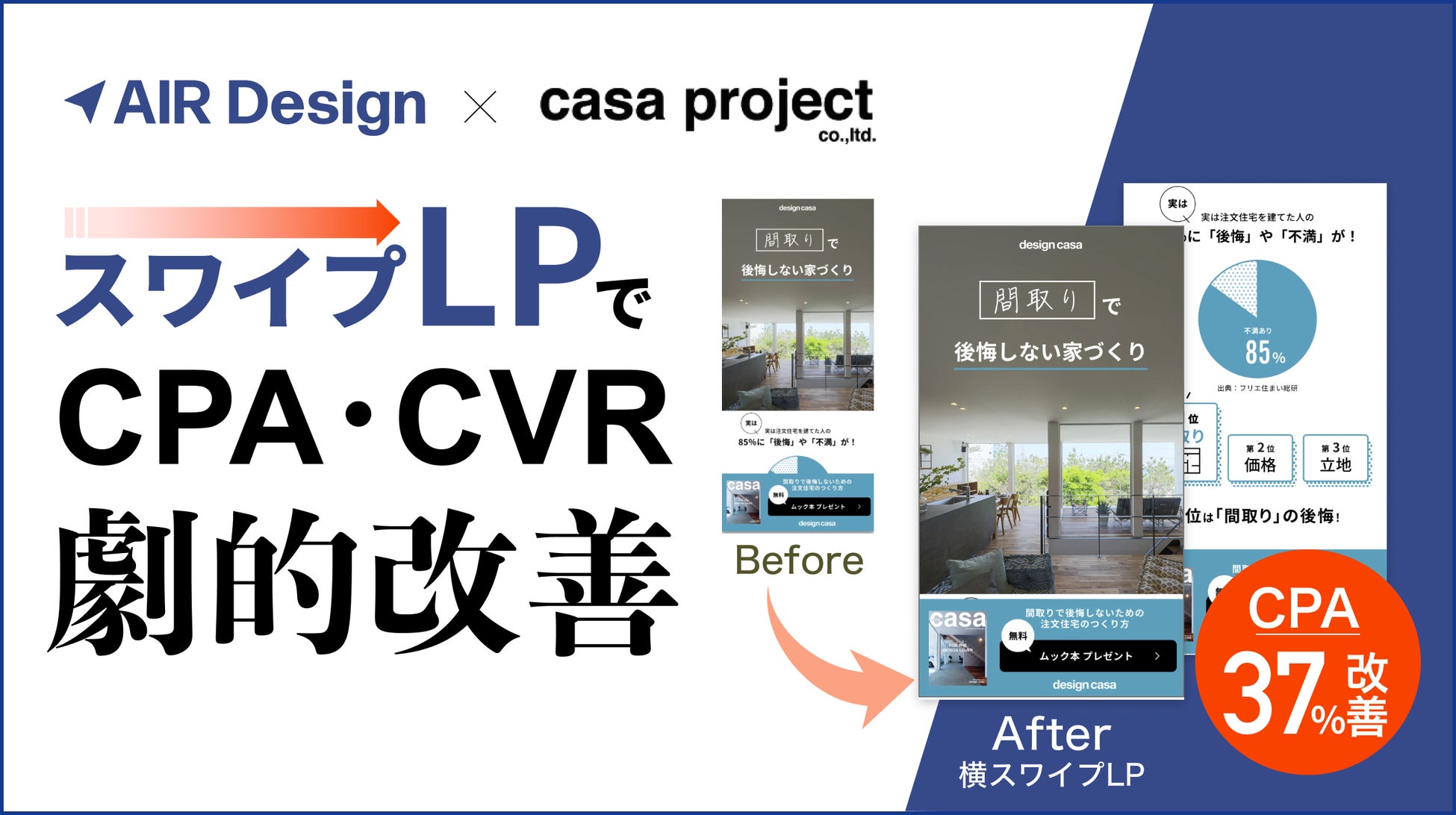 カーサプロジェクト株式会社がガラパゴスの「AIR Design」を導入し、LP制作の課題解決と広告成果の向上を実現した事例を公開しました。スワイプLPの導入により、CPAが約37%改善しました。