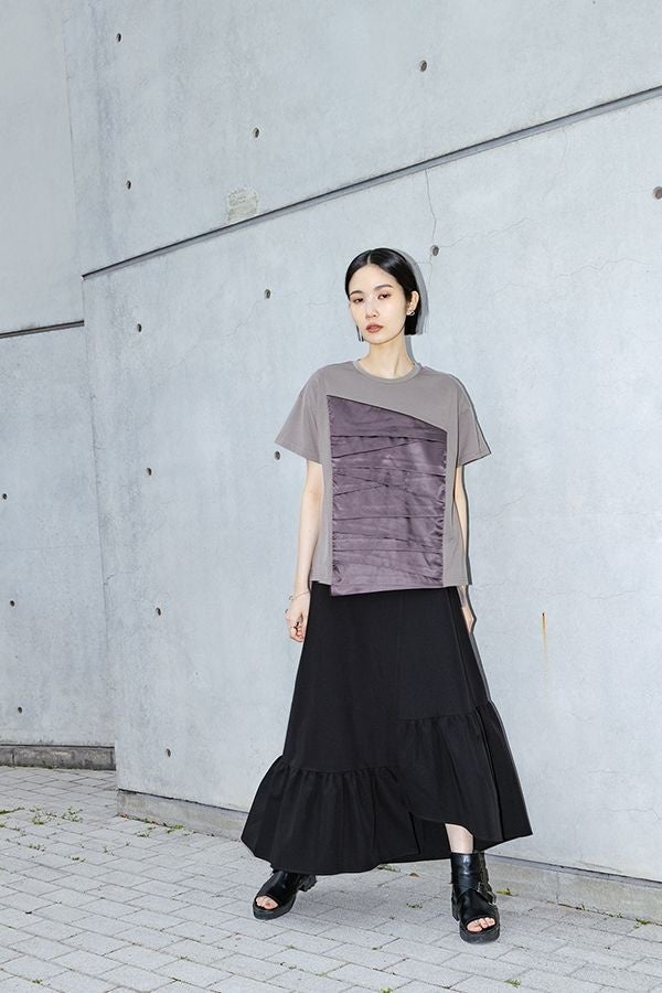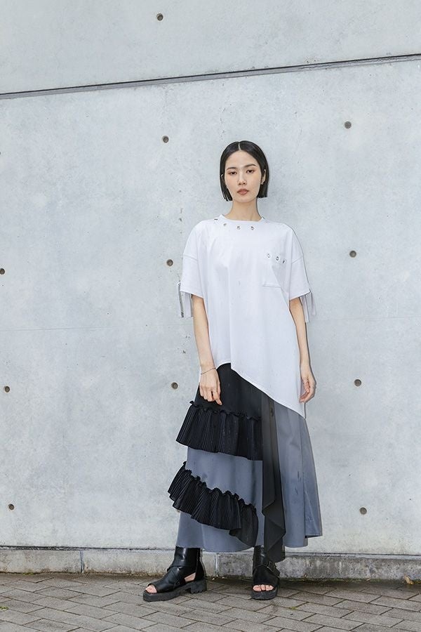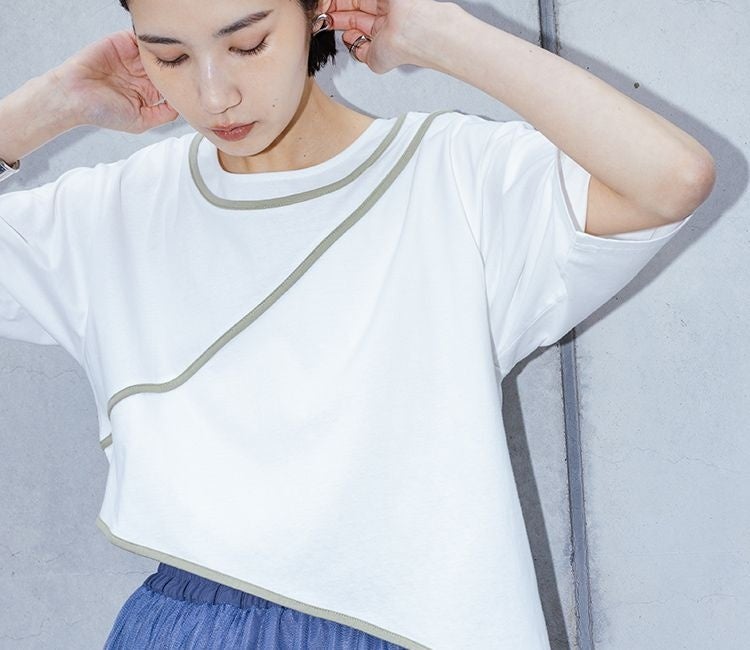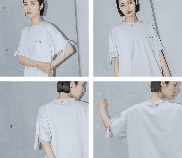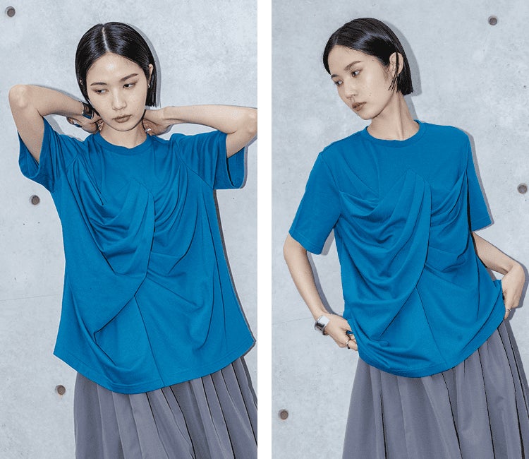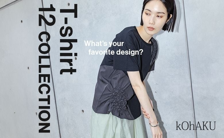 「配色」「異素材」「ドレープ」「シルバーパーツ」こだわり抜かれたデザインに思わず心惹かれる12のTシャツコレクション。エッジの効いたkOhAKUならではの世界観できっとお気に入りの1枚に出会えるはず。
