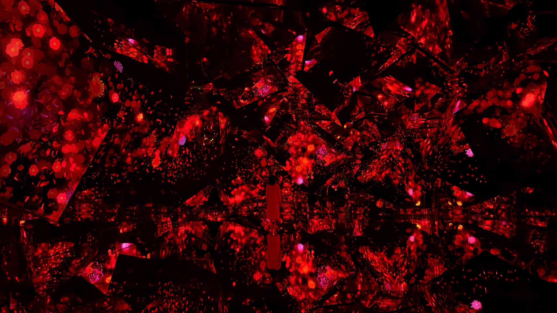 progress)》では、コンピュータープログラムによりリアルタイムで描き出される花々が、誕生と死滅を繰り返します。また、花々は、来場者の振る舞いにインタラクティブに反応しながら変容するため、今この瞬間の絵は二度と見ることができません。
