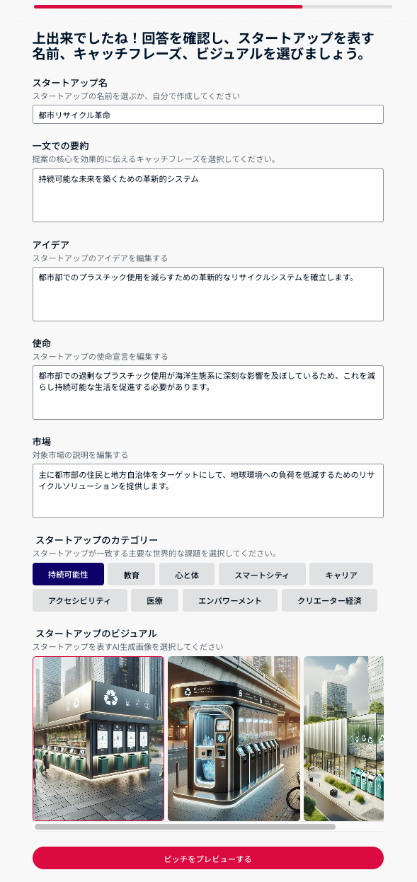 AIのサポートを活用して、社会・環境問題を解決する革新的なアイデアを集約した応募フォームに作成し、公式サイトに提出下さい。