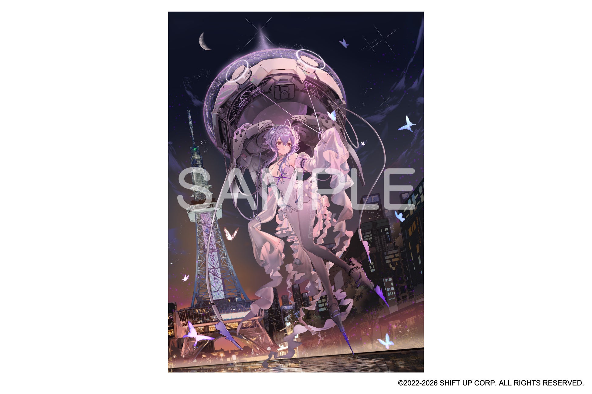 本イベントの第5都市目となる名古屋のキービジュアルを担当するのは、昨年11月のタイトル3周年に実装された人気キャラクター「リバーレリオ」。中部電力 MIRAI TOWERを背景に、夜の街に降り立った幻想的な姿を描いた描き起こしイラストが名古屋会場を彩ります。